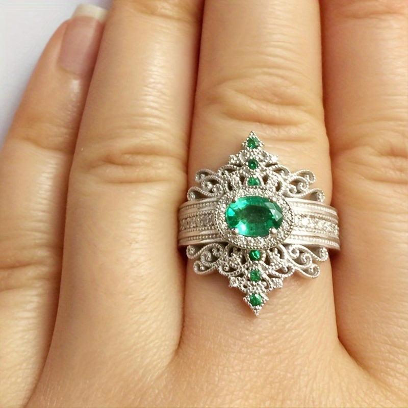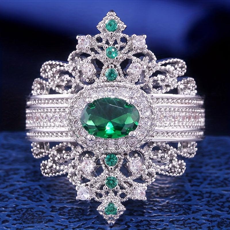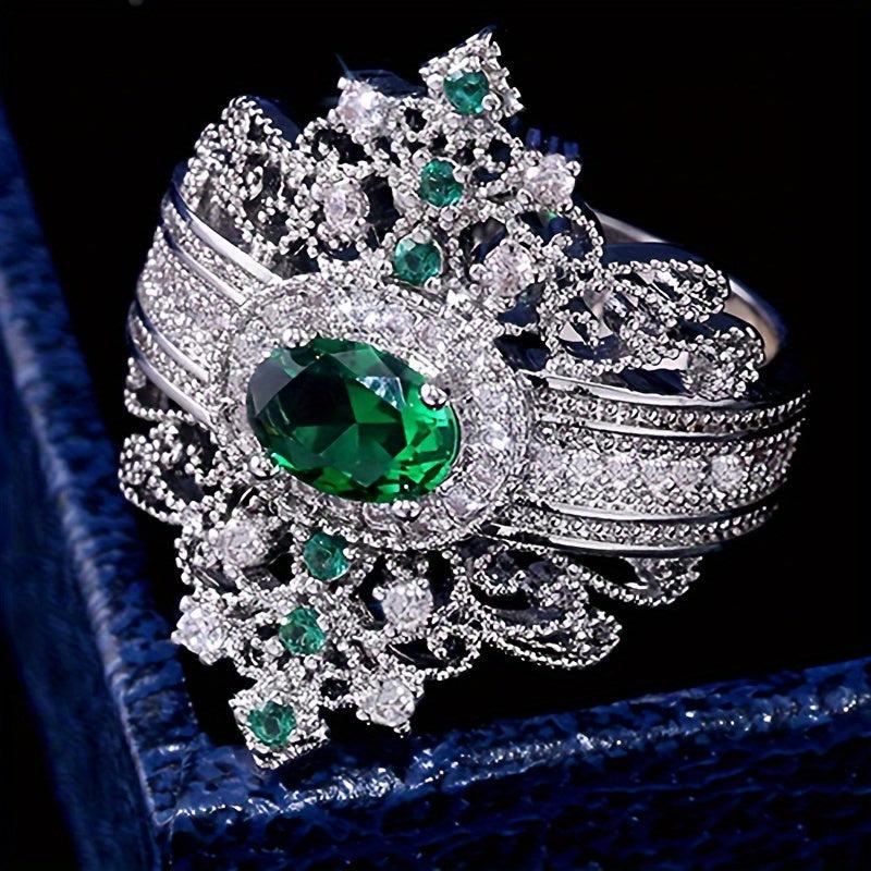 This stunning green cubic zirconia ring is the perfect accessory for parties and celebrations. The copper band adds a touch of elegance, while the oval cut gemstone sparkles beautifully.