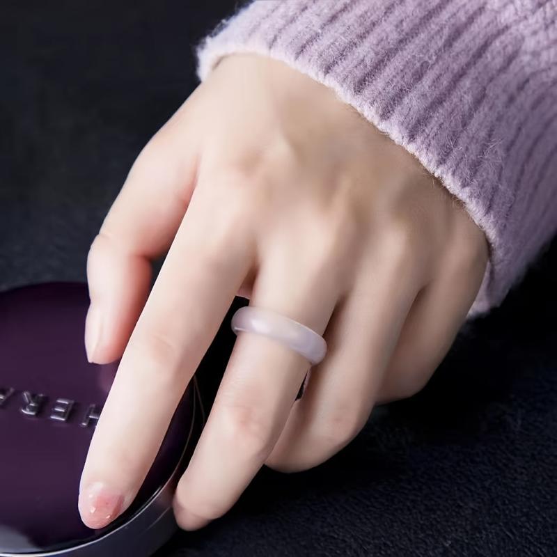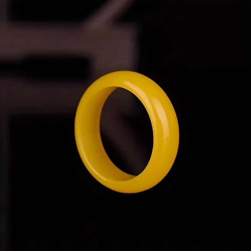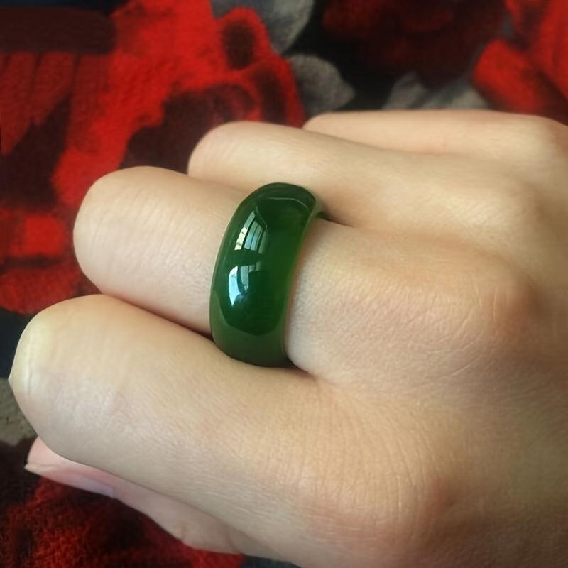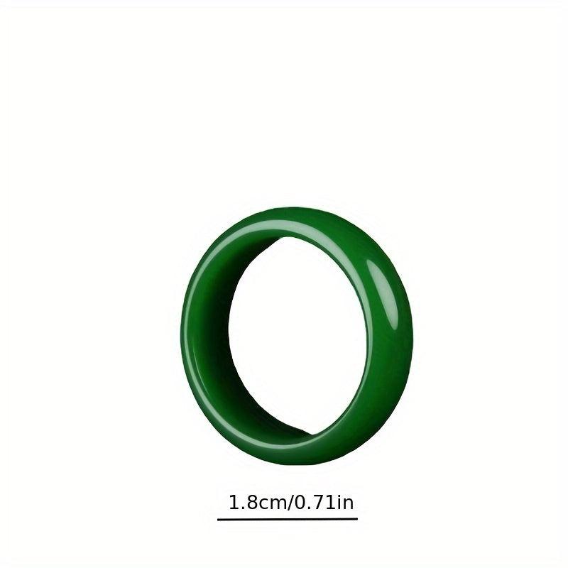 This green faux jade ring features a sleek design with a polished finish, making it perfect for casual attire. Its minimalist style is all-season compatible.