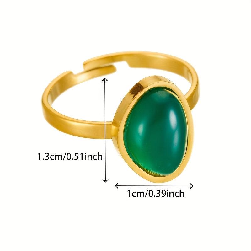 Elevate your style with this stainless steel ring featuring a green irregular circular gemstone. Perfect for both casual attire and formal events, this durable ring makes a perfect gift for her.