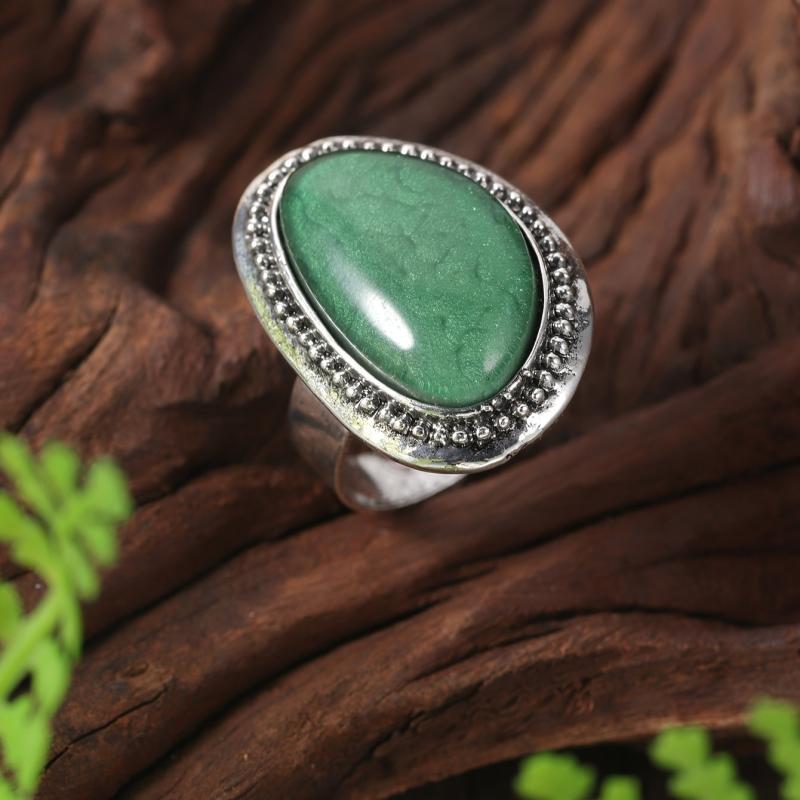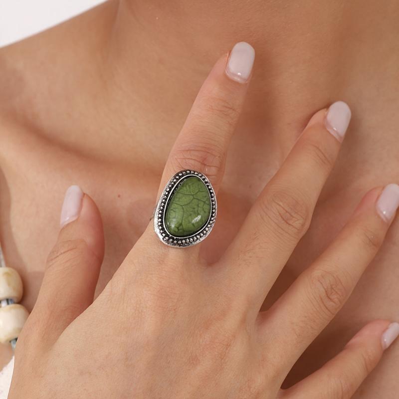 Add a touch of Bohemian style to your look with this fashionable retro ring set featuring green resin and stainless steel. Perfect for daily wear, travel, banquets, and rugby tournaments, or gift it to a loved one.