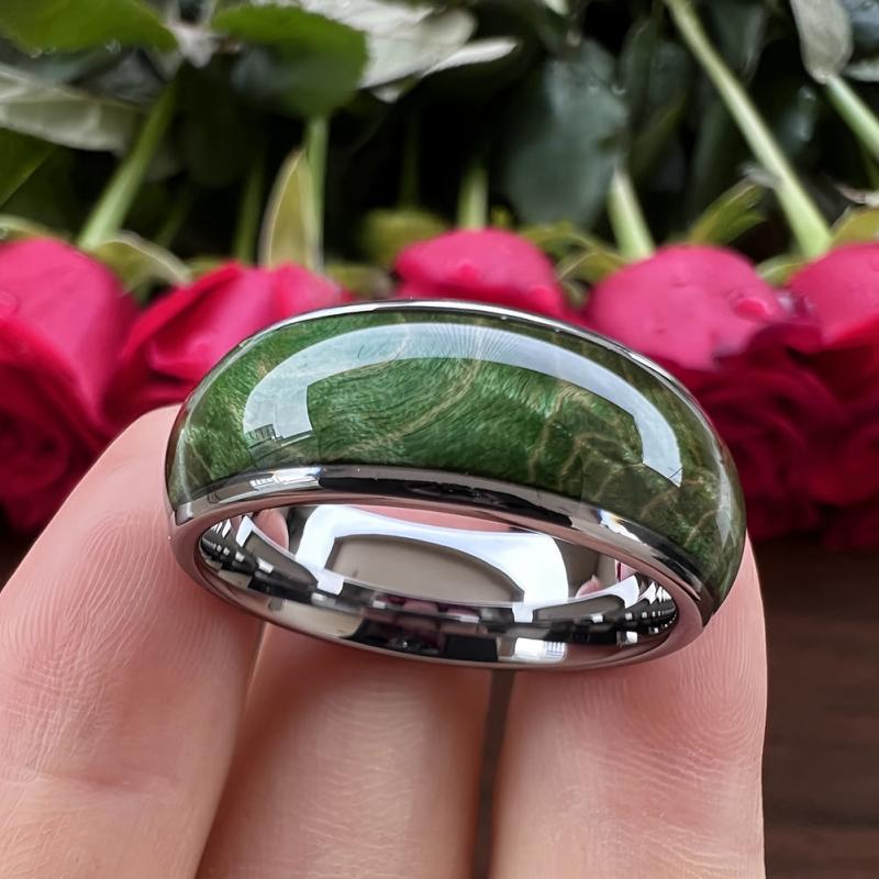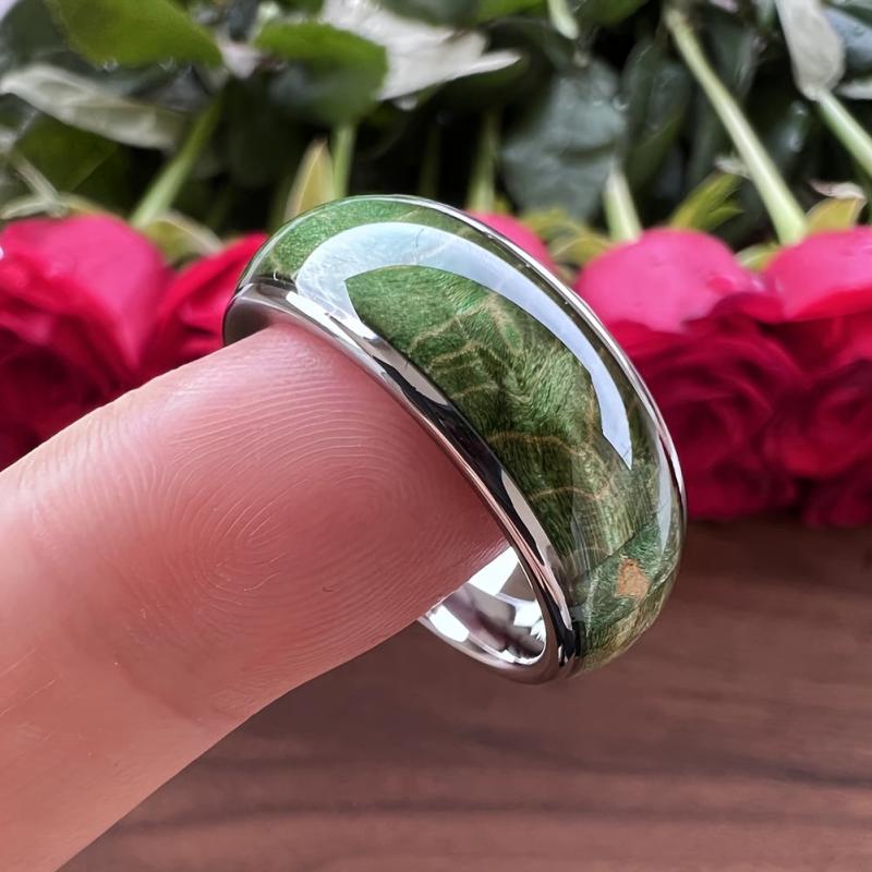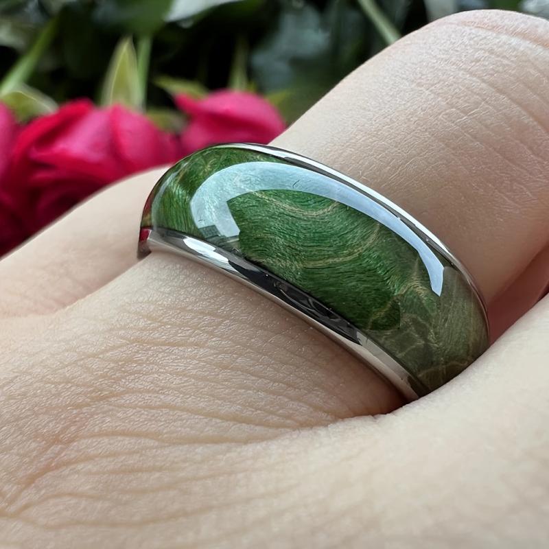 Green Wooden Ring Wooden Wedding Band Silvery Toned Wooden Ring Men&