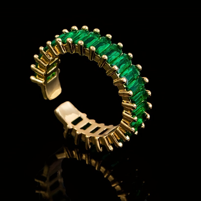 This square green zirconia ring is a perfect promise of love. Plated and stylish, it adds a touch of elegance to any outfit.