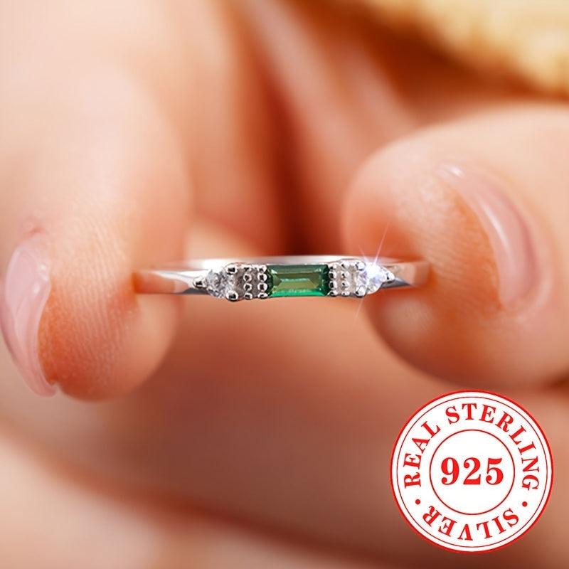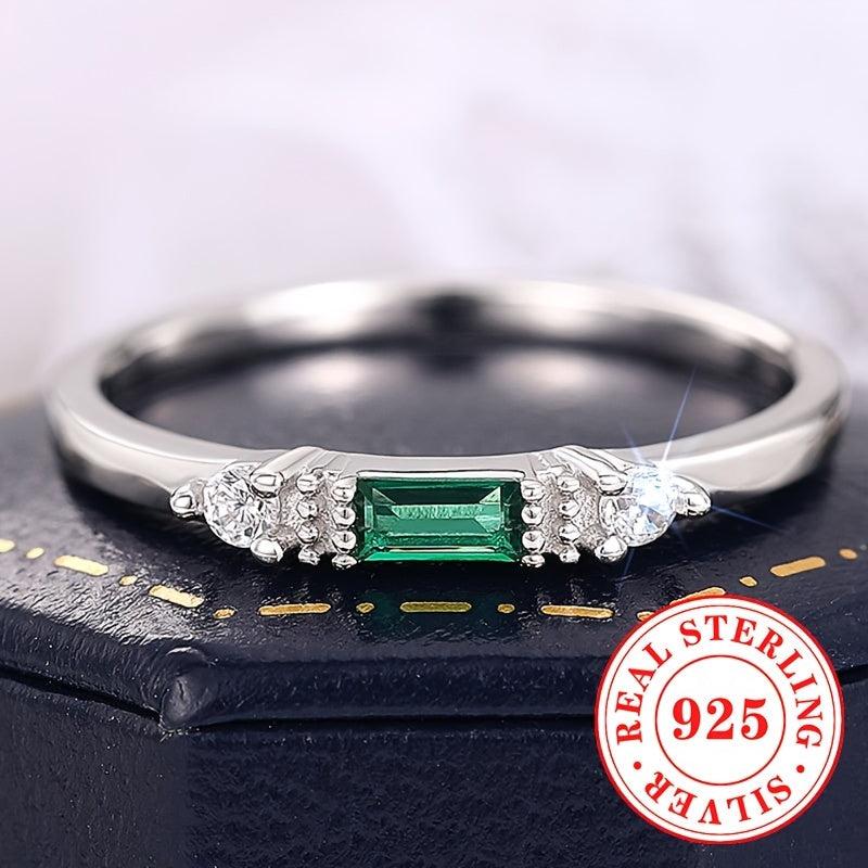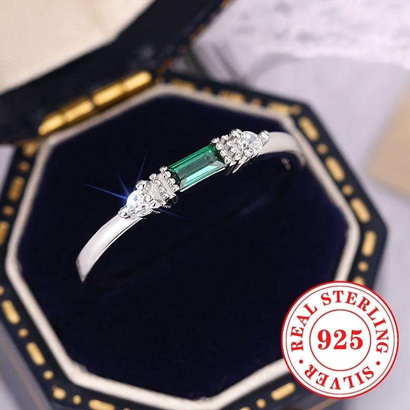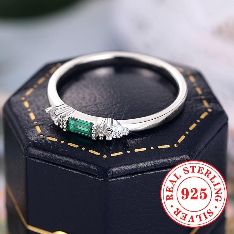 Elegant synthetic green zirconia ring made of pure silvery material. Perfect for parties and casual wear.