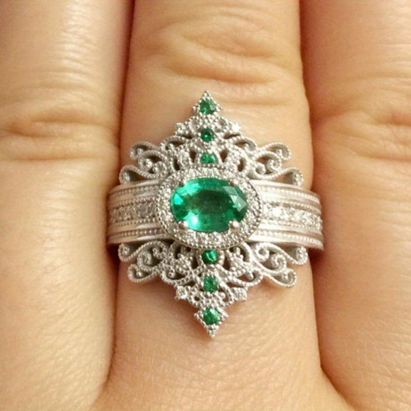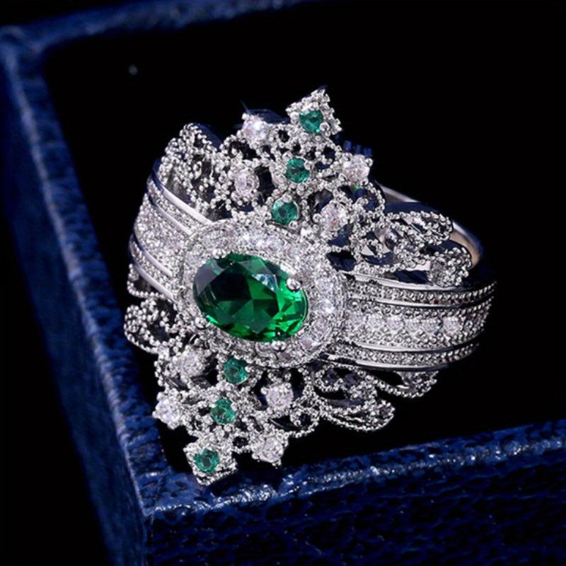 • Retro green zirconia rings for women