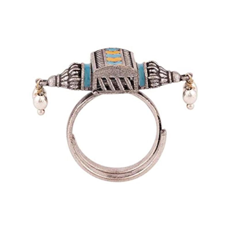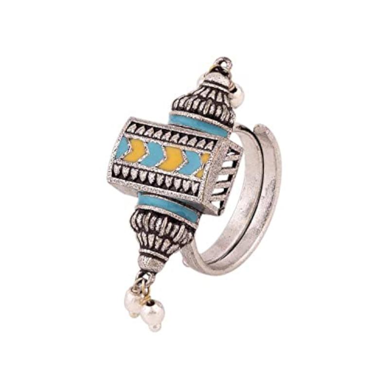 Make a bold statement with this exquisite Gwalior enameled ring. It features intricate enamel work and is perfect for adding a pop of color to your outfit.
