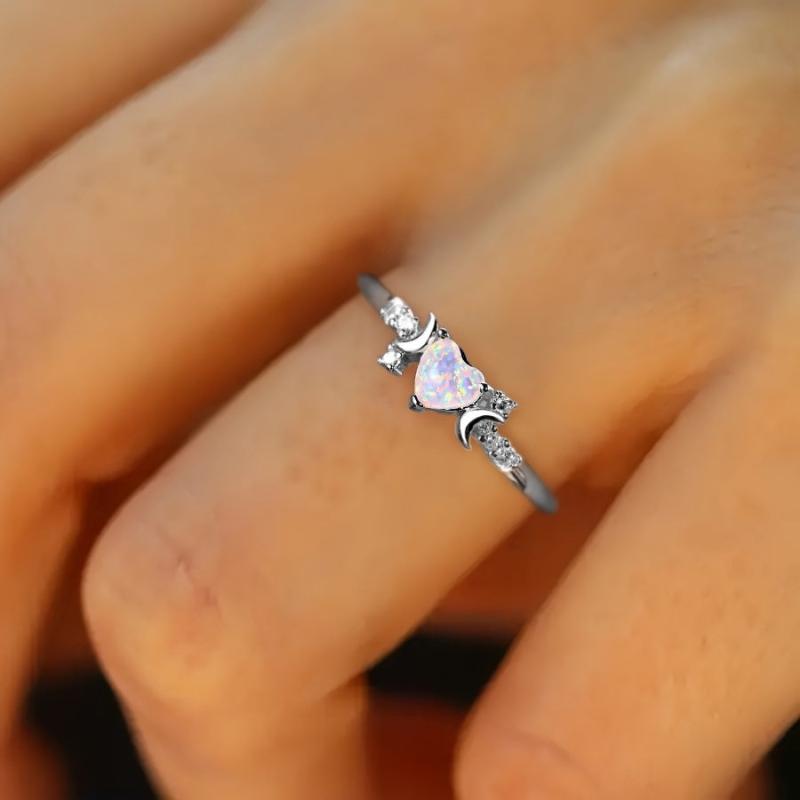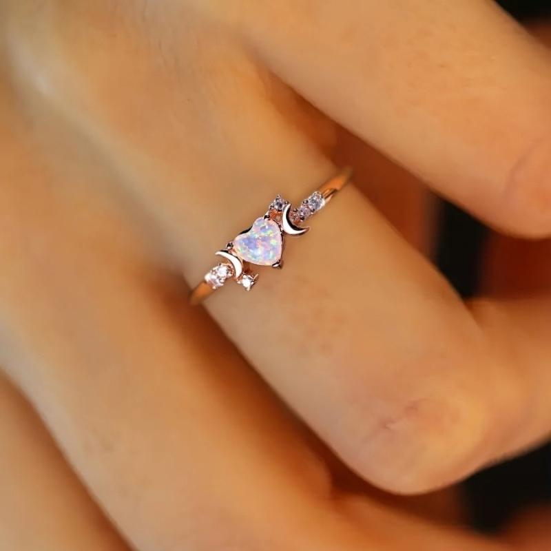 Stunning heart-shaped opal ring with sparkling cubic zirconia, perfect for weddings and parties. Made with 14K plated copper for a luxurious look.
