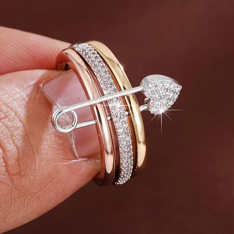 Elegant heart and safety pin ring featuring sparkling cubic zirconia accents. Ideal for daily wear or special occasions.