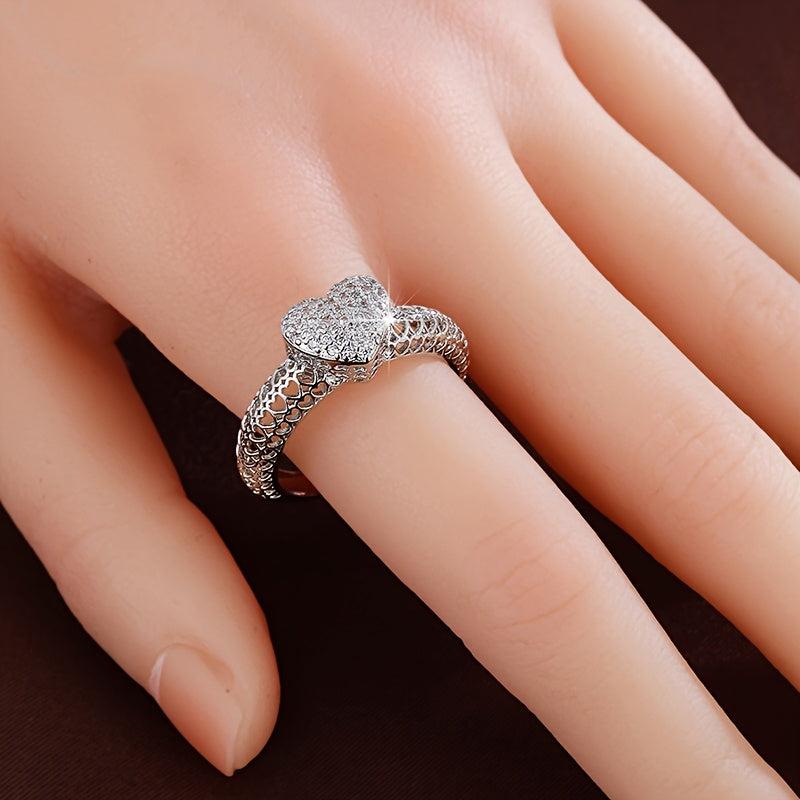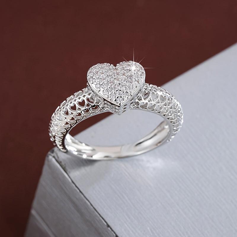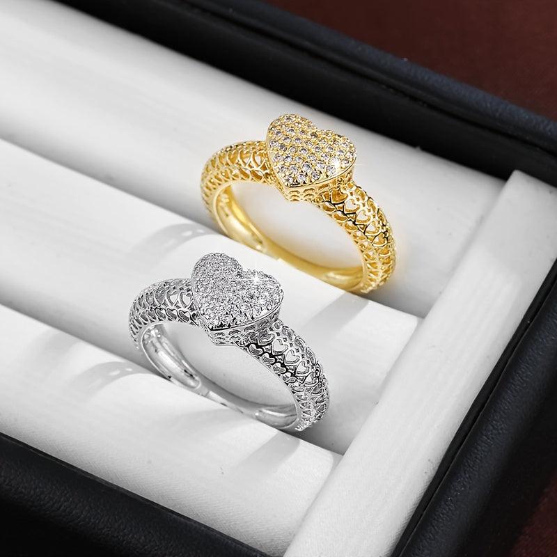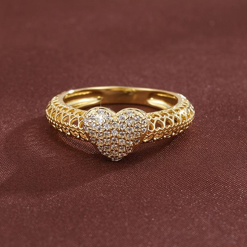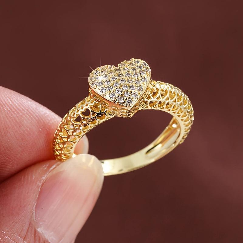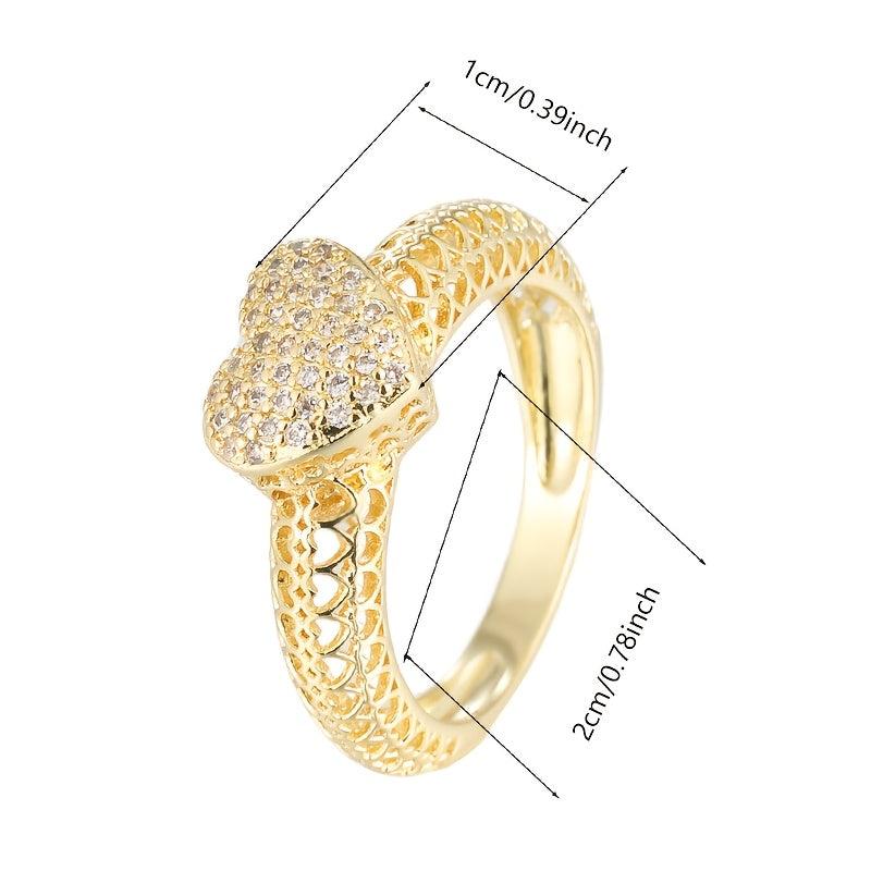 This heart-shaped cutout ring features sparkling cubic zirconia in a golden tone design, making it a perfect accessory for daily wear or weddings. The durable metal construction ensures long-lasting quality.