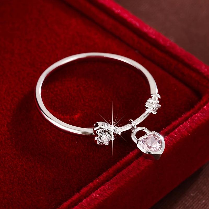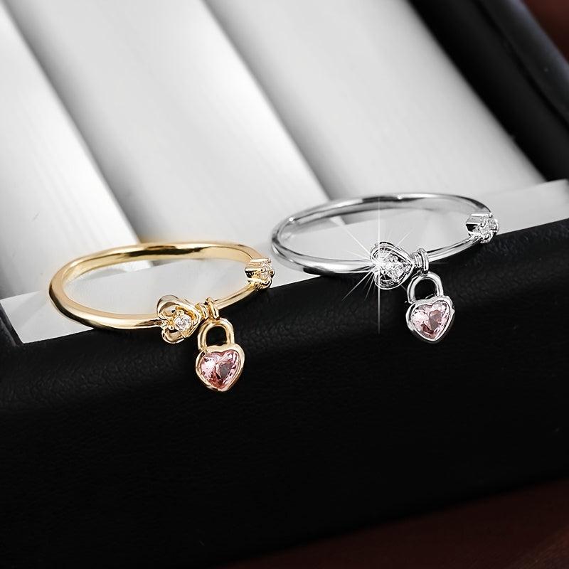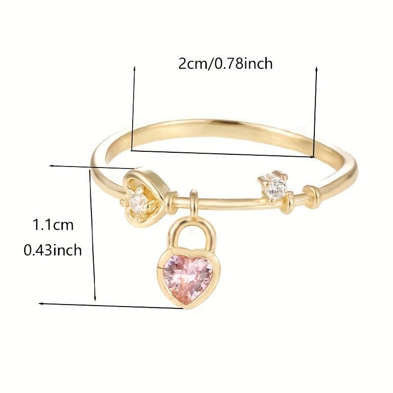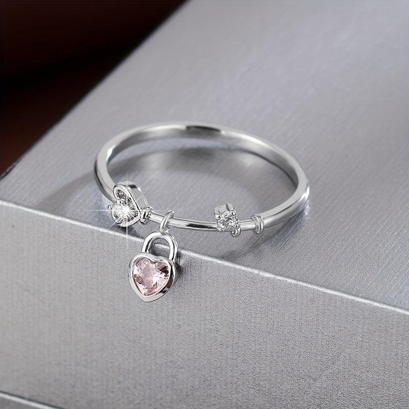 Add a touch of elegance to your casual attire with this heart shaped lock ring featuring synthetic zirconia stones. It's a versatile accessory that can be worn year-round and makes a great gift idea.