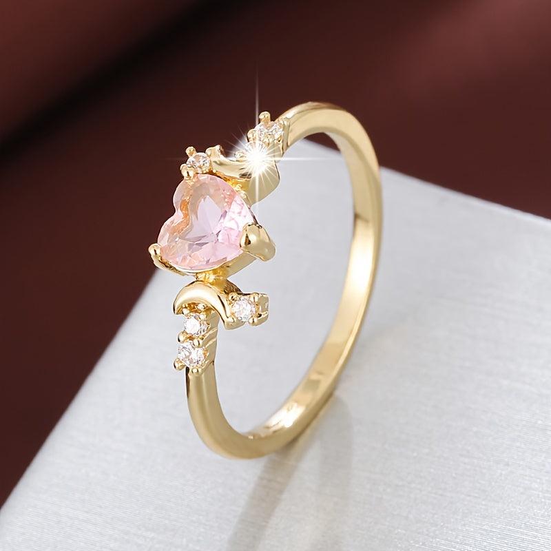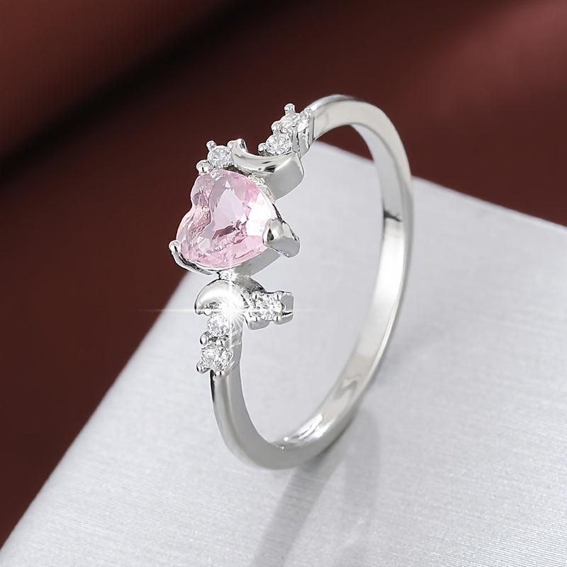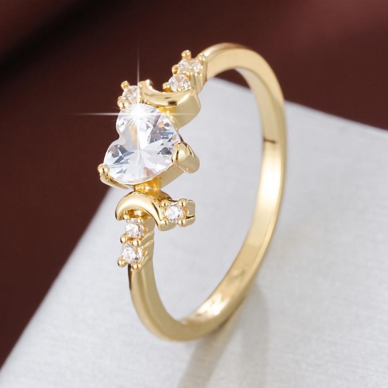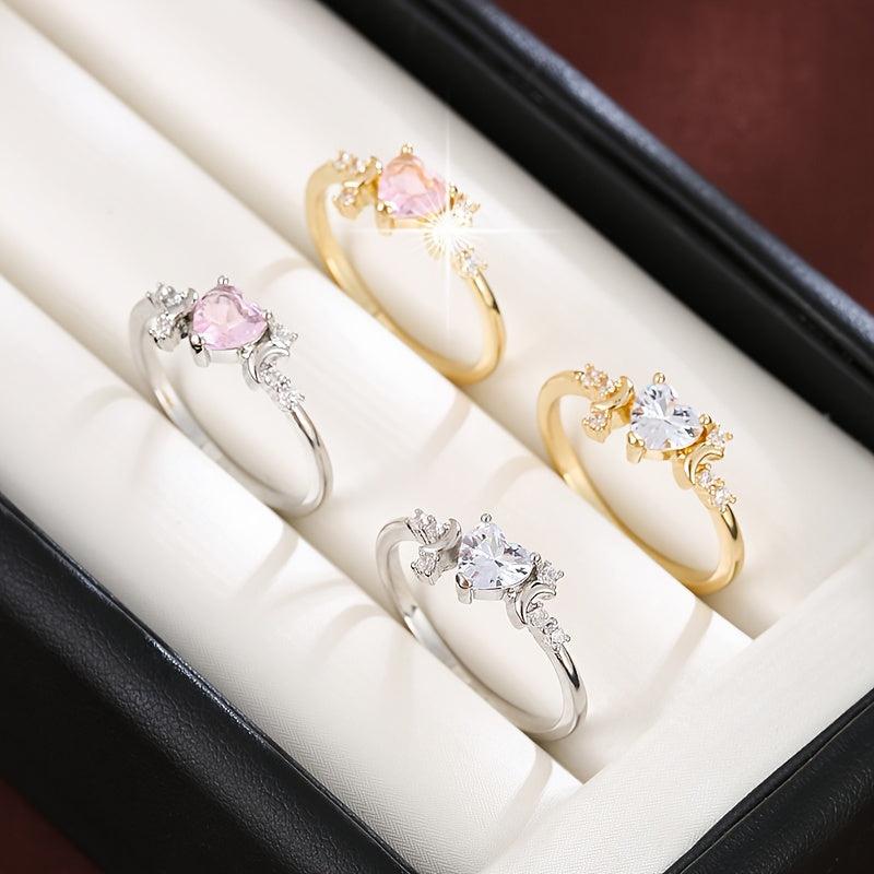 Elegant lady's ring set featuring heart-shaped zirconia stones for added sparkle and charm.