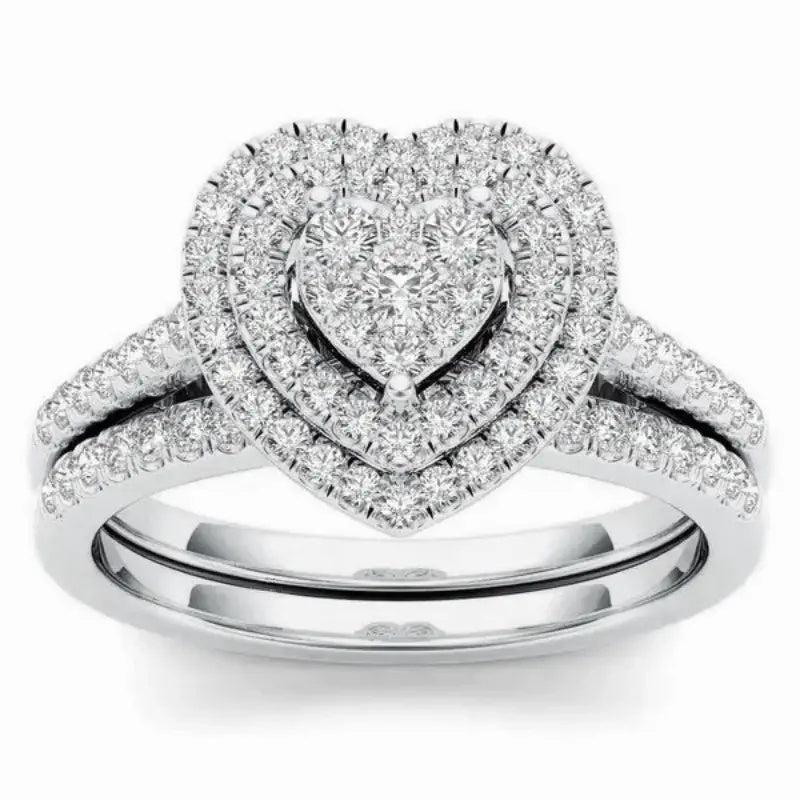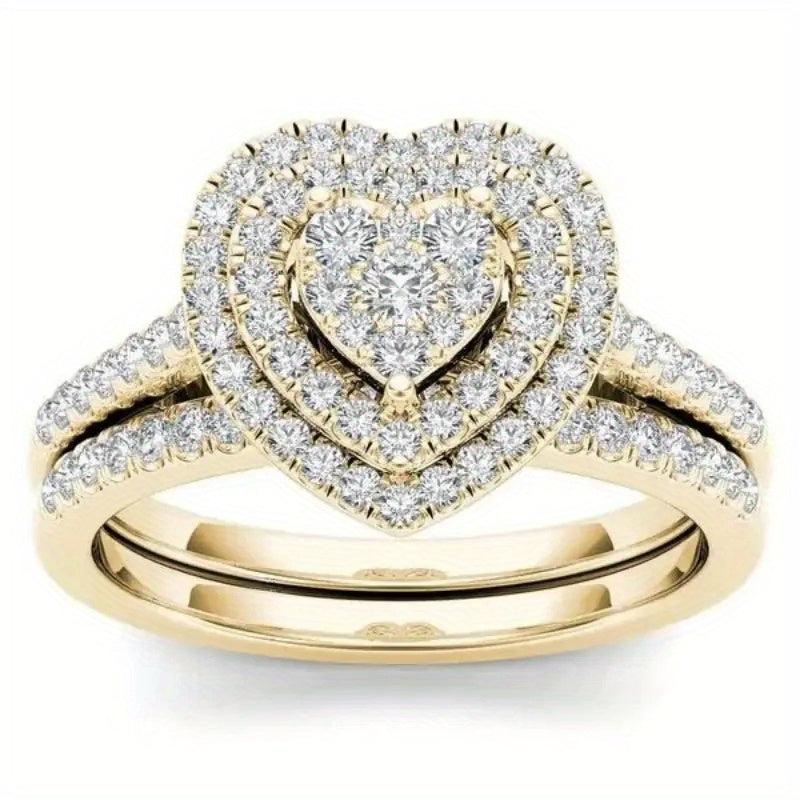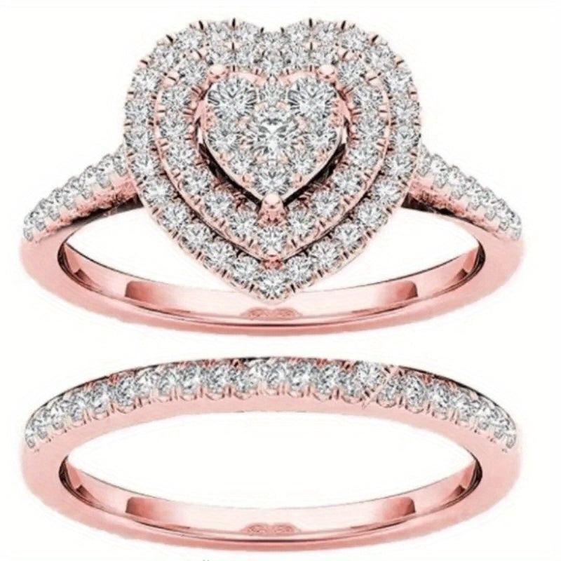 This elegant 2-piece ring set is made of synthetic zirconia stones set in copper with a golden plated finish. Perfect for Valentine's Day, engagement, wedding, or as a gift for someone born in April.