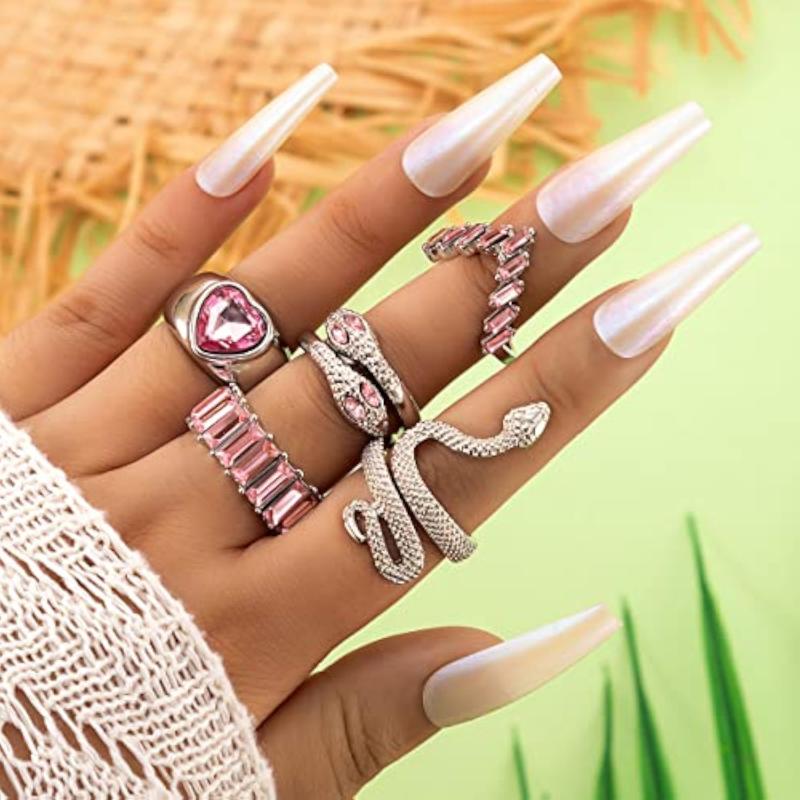 Express your unique style with this set of 5 stackable rings featuring heart and snake designs. Made from high-quality materials, these rings are versatile and trendy for any occasion.