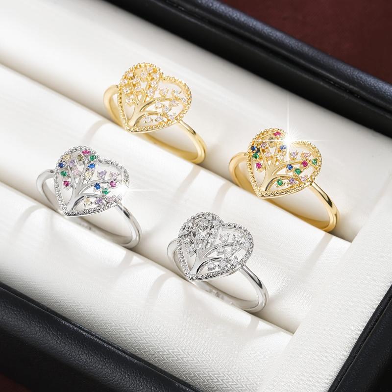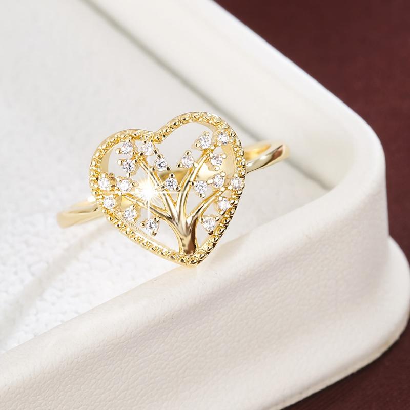 This stunning ring features a heart tree design with synthetic zirconia stones. Perfect for adding a touch of elegance to any outfit.