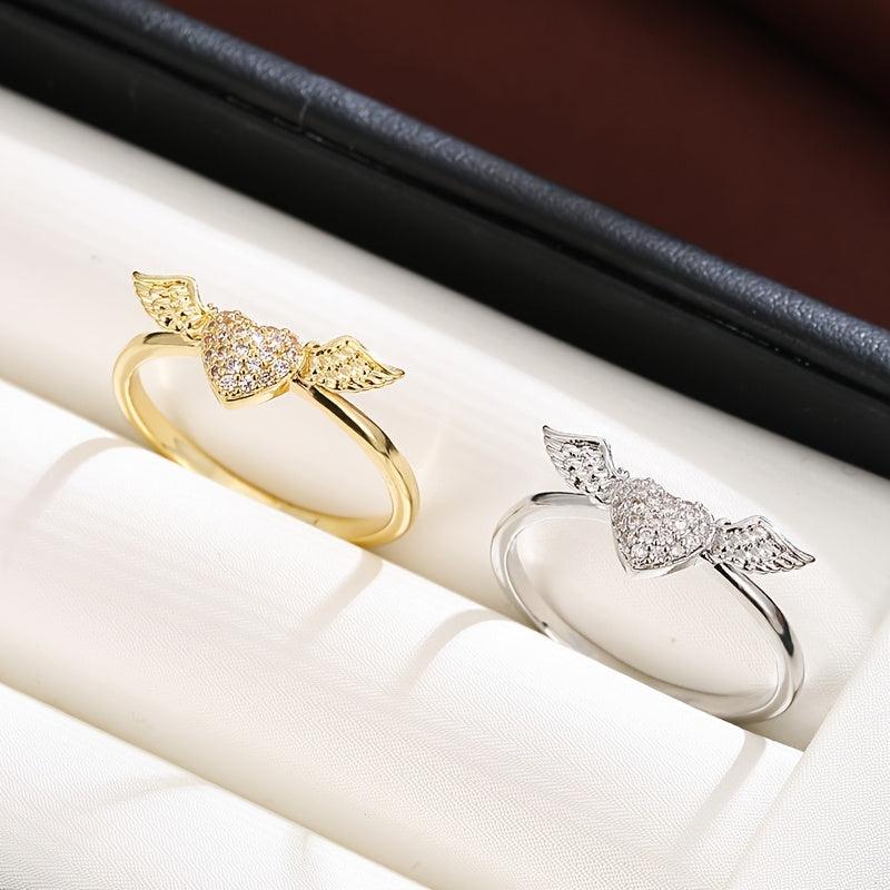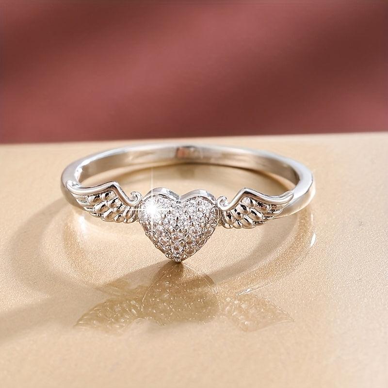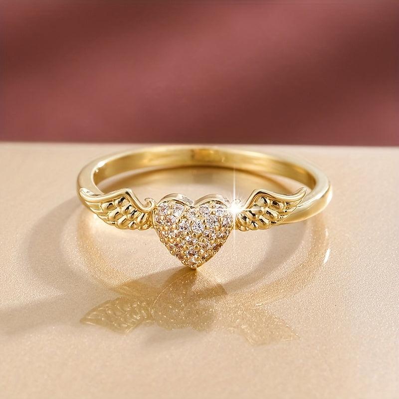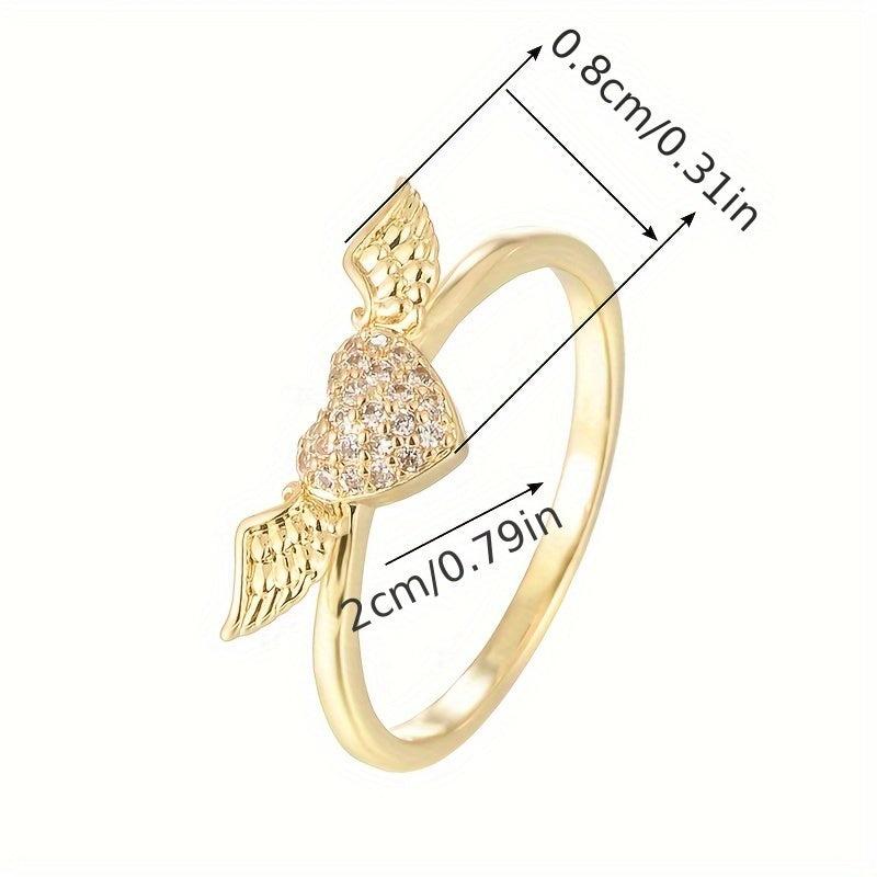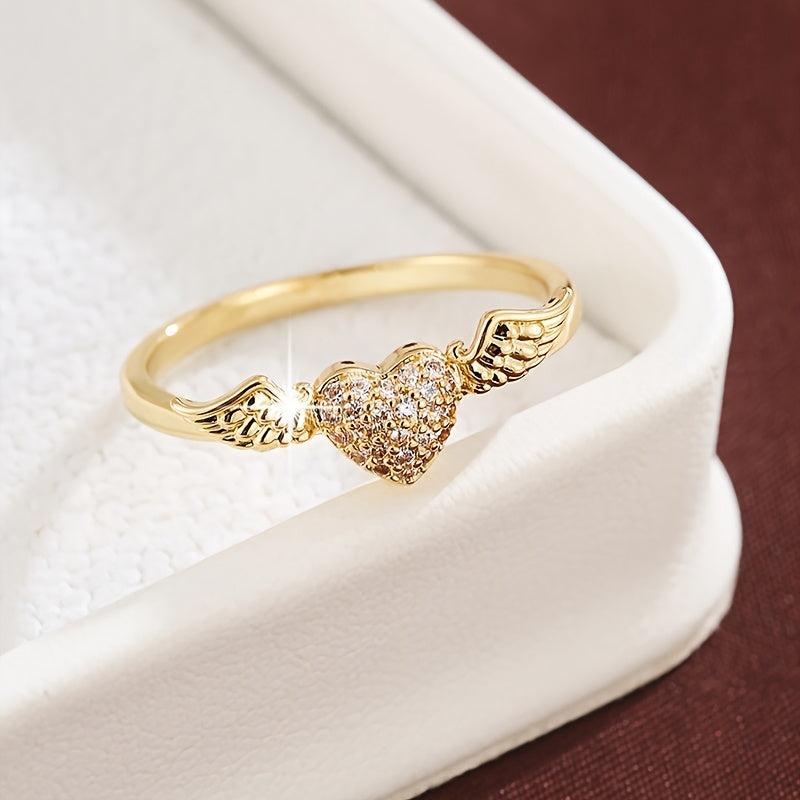 Elevate your look with this minimalist heart and wing zirconia ring. Perfect for everyday wear, this golden plated accessory is a versatile addition to your jewelry collection. Makes a great gift!