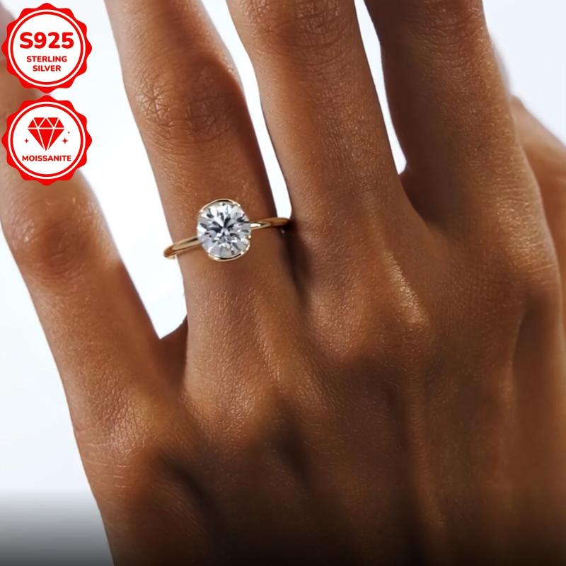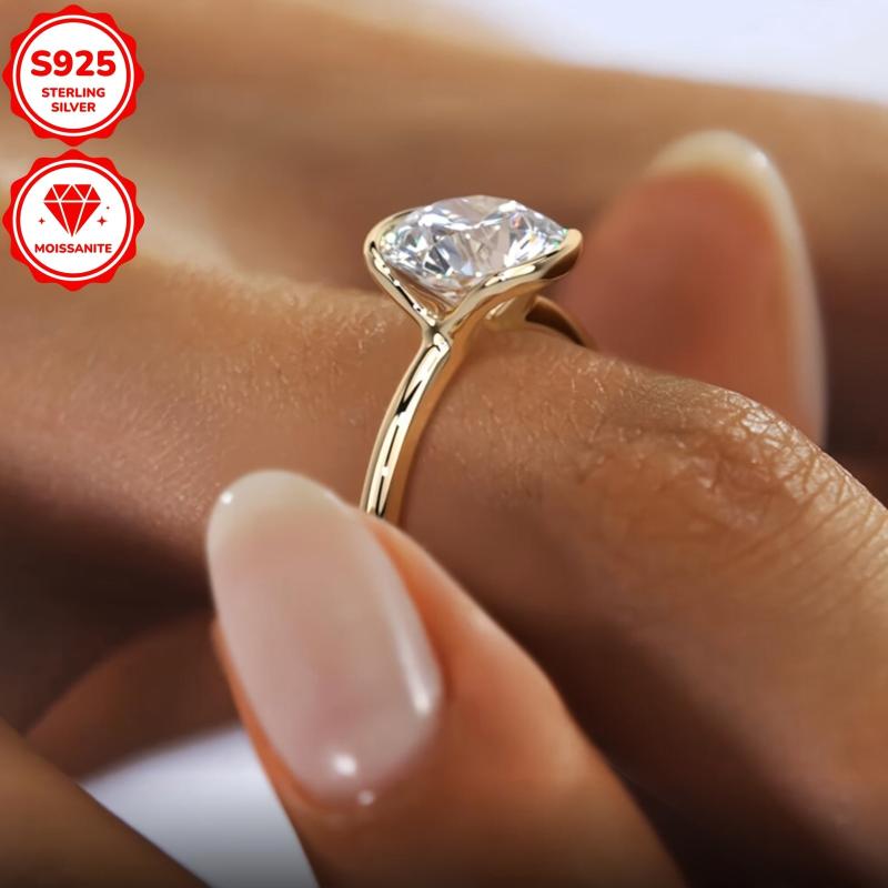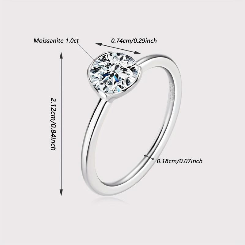 This stunning ring features a high-quality Moissanite stone set in a classic single stone design. Crafted from 925 sterling silver, this ring is perfect for engagements or special occasions.