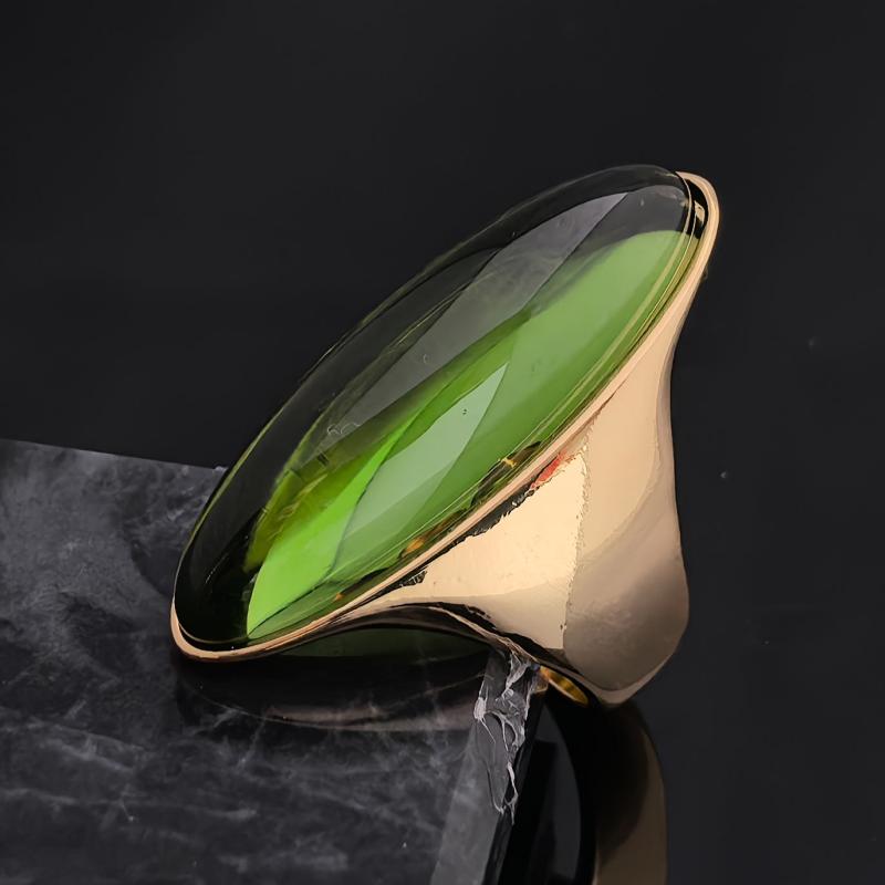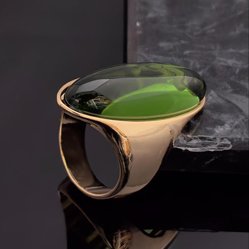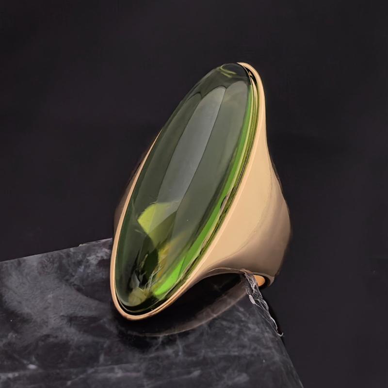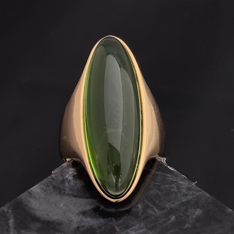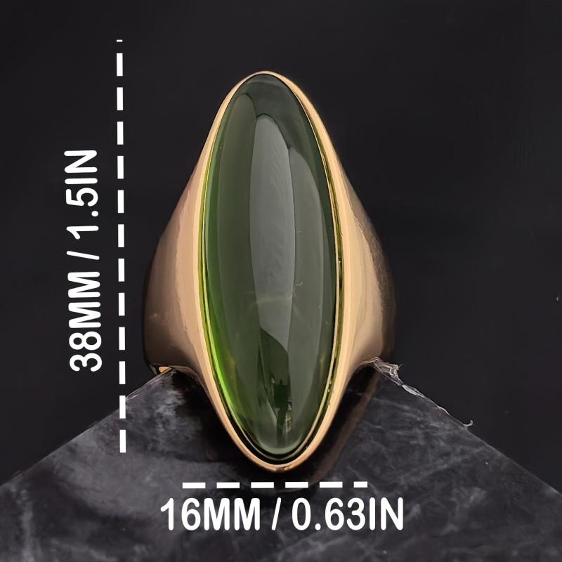 Elegant and fashionable women's ring with olive green artificial gemstone, made of high-quality stainless steel with 18K plating. This classic ring is perfect as a Mother's Day gift or for any special occasion.