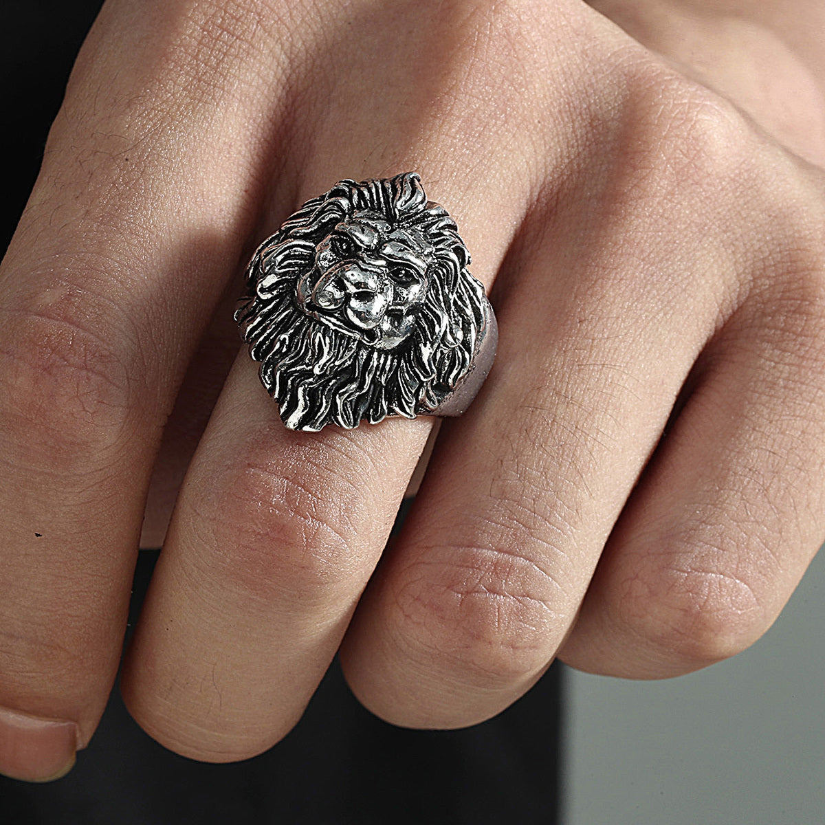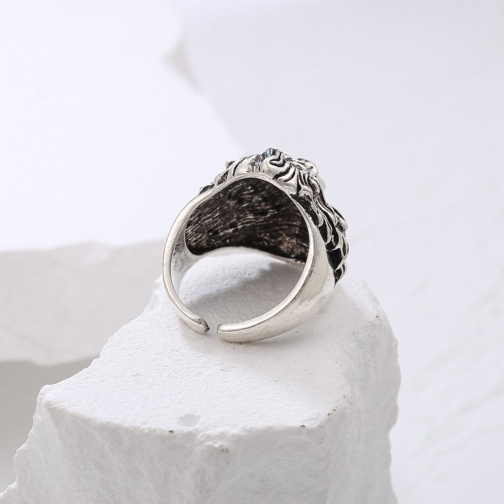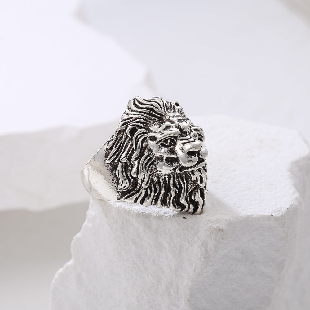 This street style ring features a lion head shape design, perfect for a bold and edgy look.