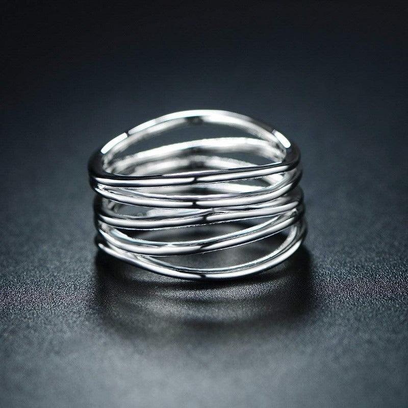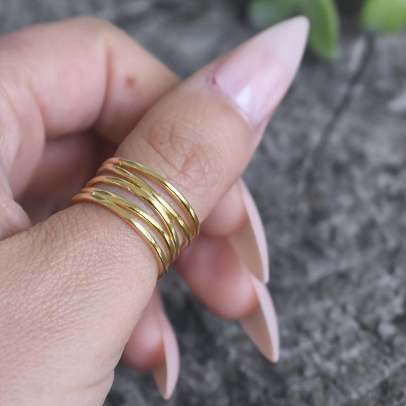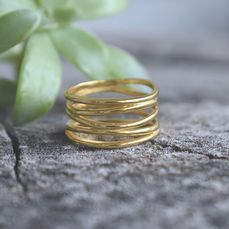 Elegant hollow out copper ring with golden tone accents, perfect for weddings, engagements, and parties. This ring is a formal accessory that adds sophistication to any outfit.