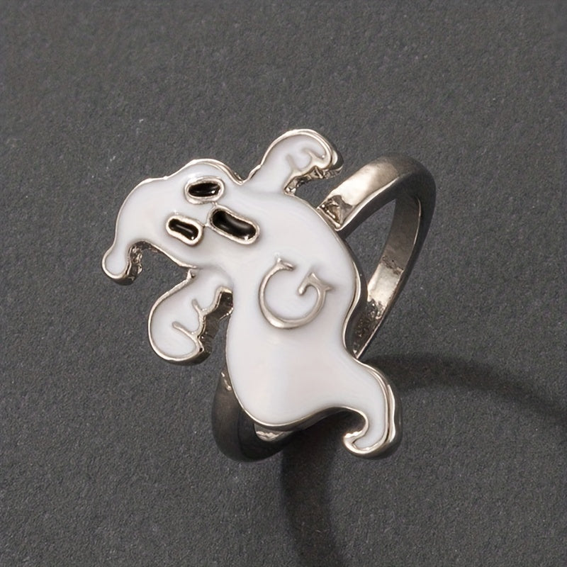 Get into the spooky spirit with this horror ring featuring a ghost pattern and oil dripping craft. Perfect to wear and enjoy during Halloween. Makes a great gift for friends.