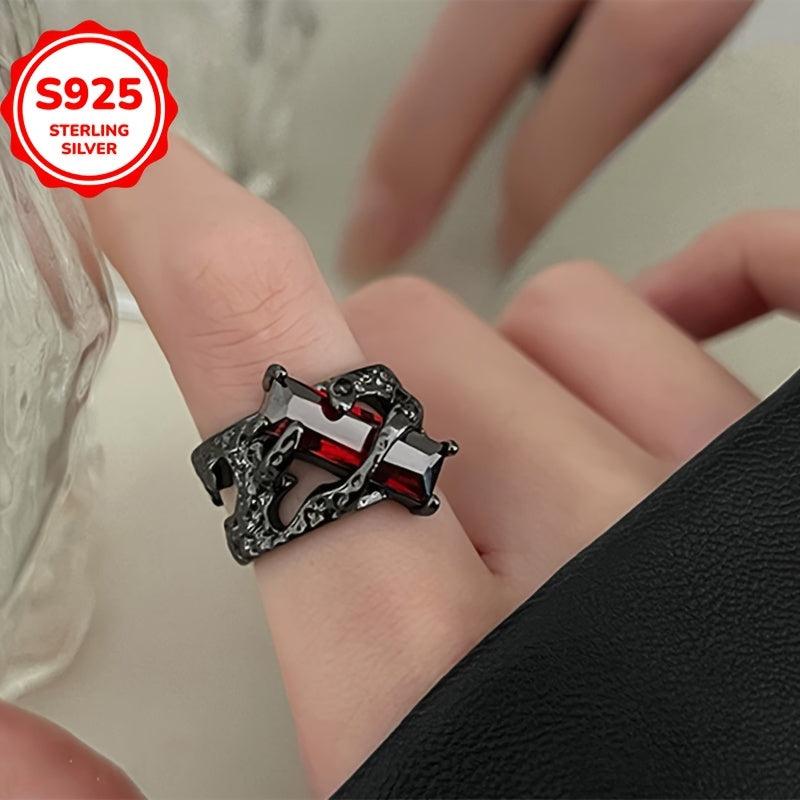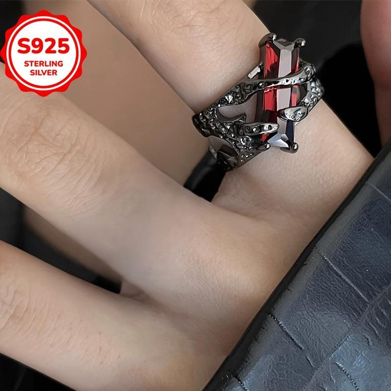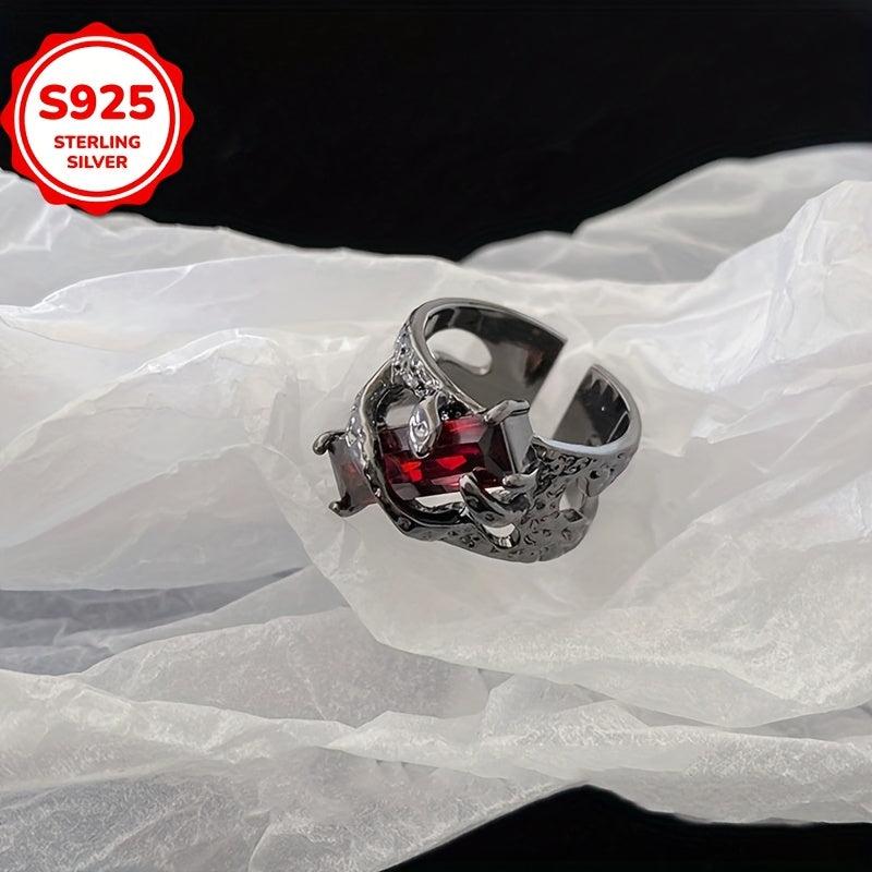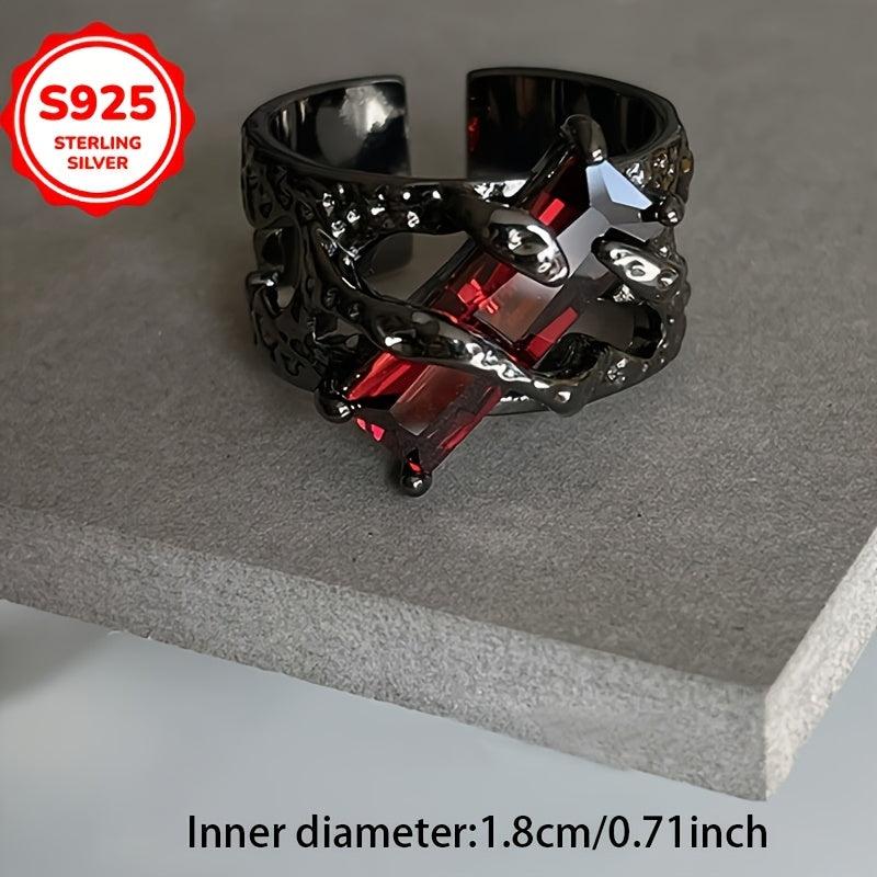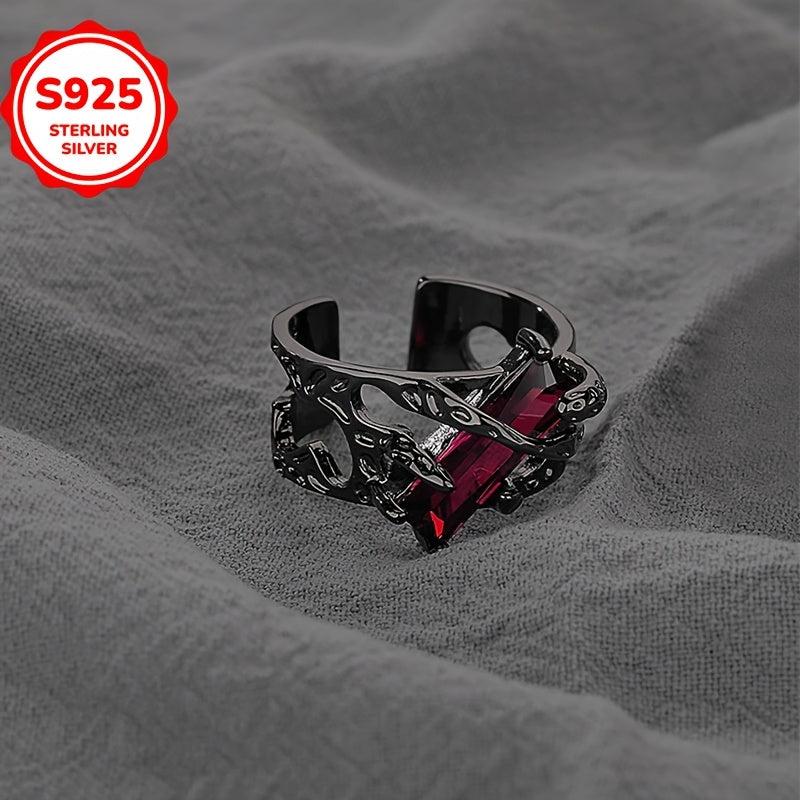 This stylish and unique open ring features an irregular shaped red synthetic zirconia. It is hypoallergenic and suitable for all seasons, making it a perfect gift.