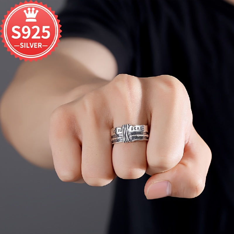 This wide face geometric men's ring is perfect for all occasions. It is a great gift option and comes in an anti-oxidation box. Weighs 4.7g.