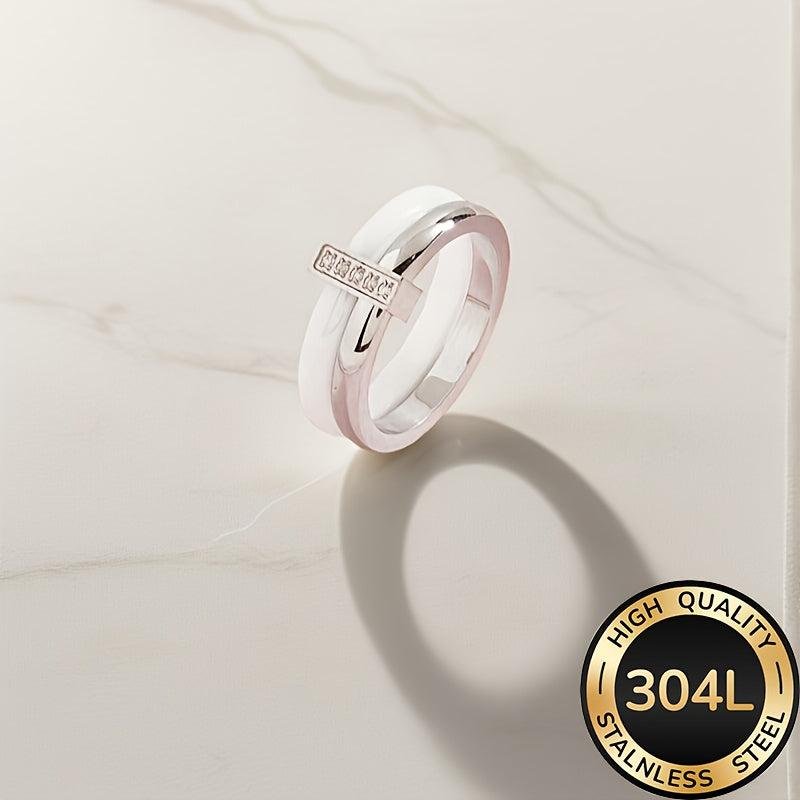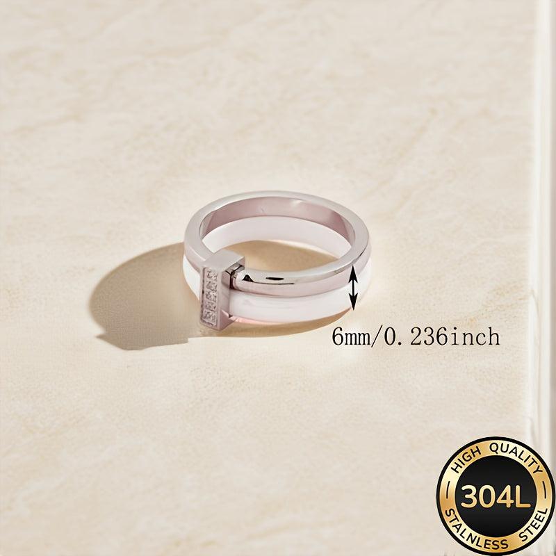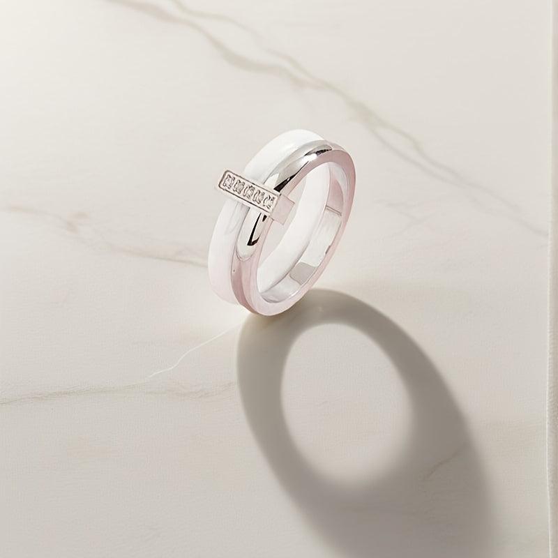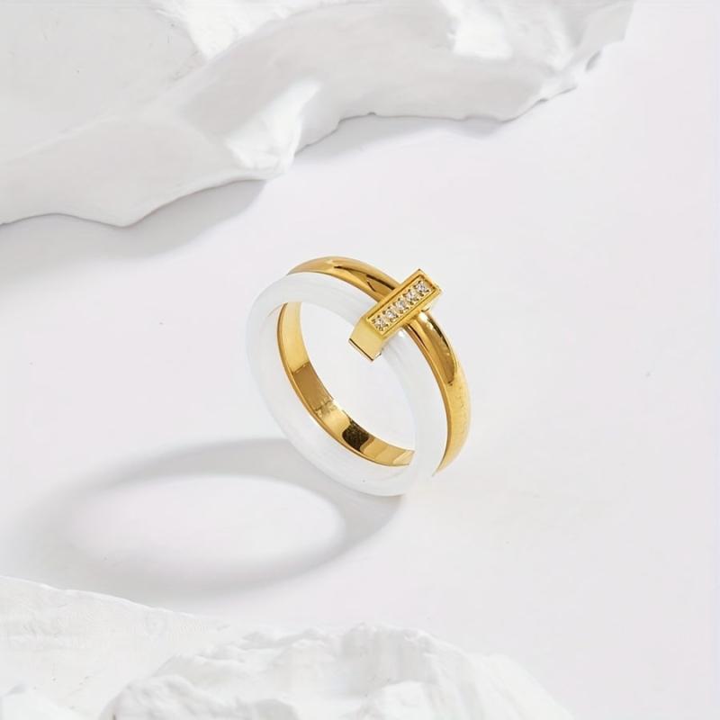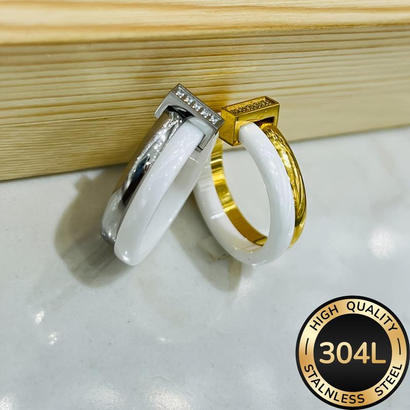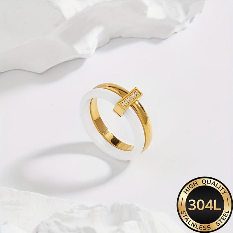 This stunning women's ceramic ring features an infinity style design with synthetic cubic zirconia. It is plated with 18K gold on 304L stainless steel, making it a perfect accessory for weddings, banquets, or as a gift.