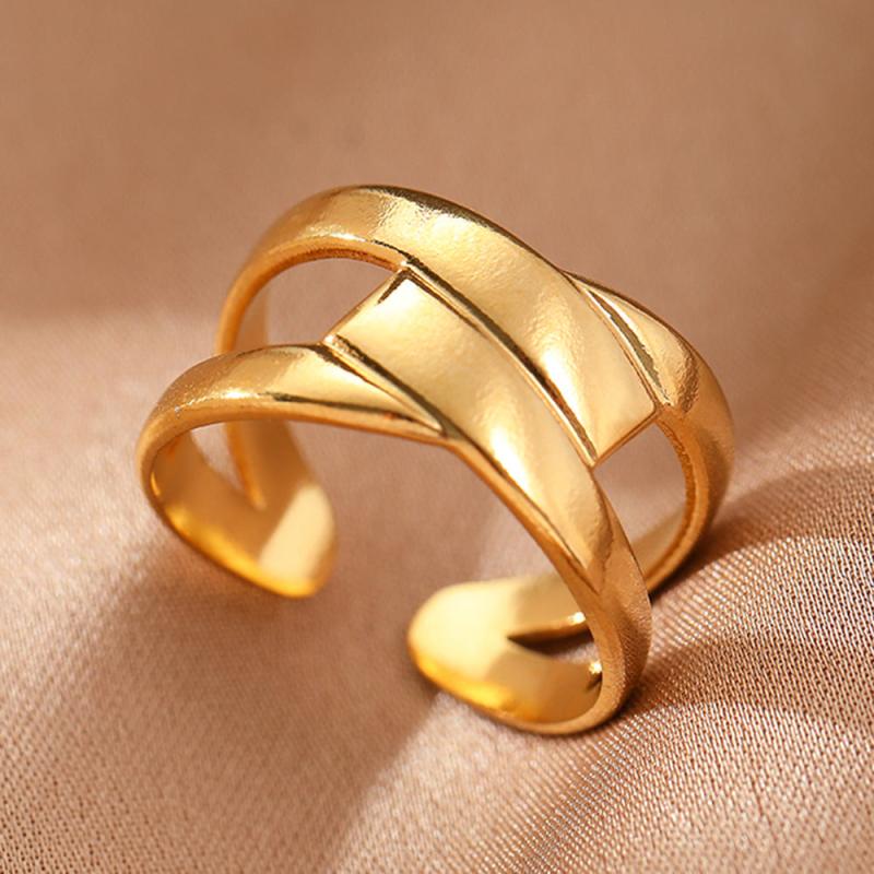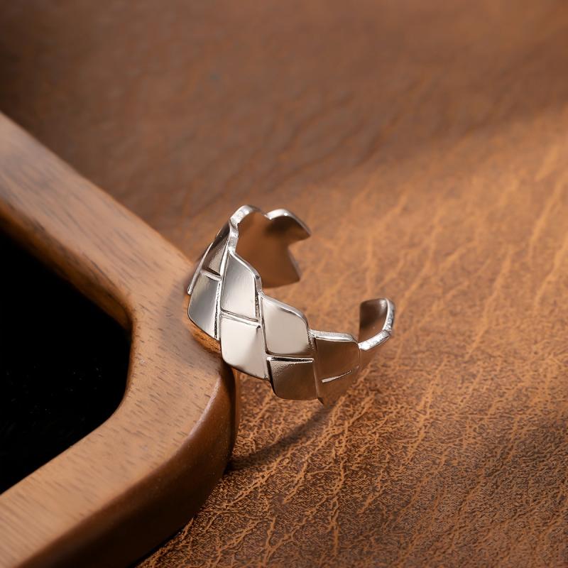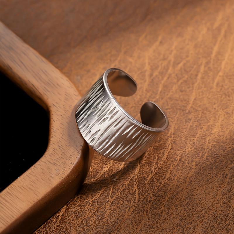This stainless steel open ring features an irregular geometric design that is minimalist yet intricate. It's perfect for daily wear, parties, and events. A great unisex gift for both men and women.