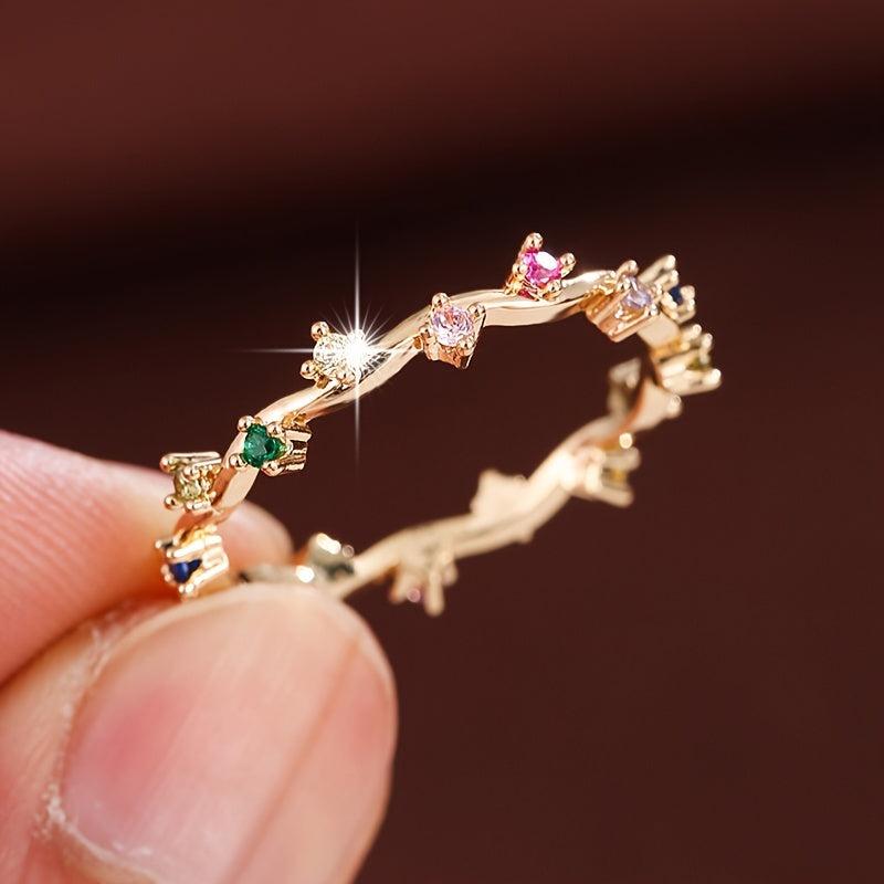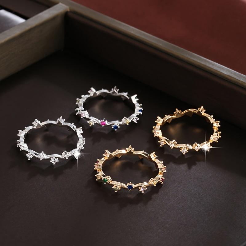 Elegant and stylish ring featuring synthetic zirconia stones in an irregular line design.