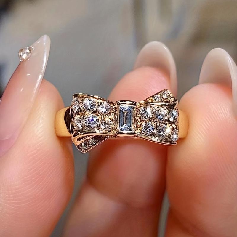 Elegant ring featuring a Japanese bow design with sparkling synthetic zirconia stones. Perfect for daily wear and parties, this versatile piece will complement any outfit year round.