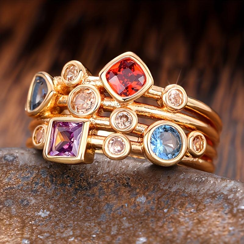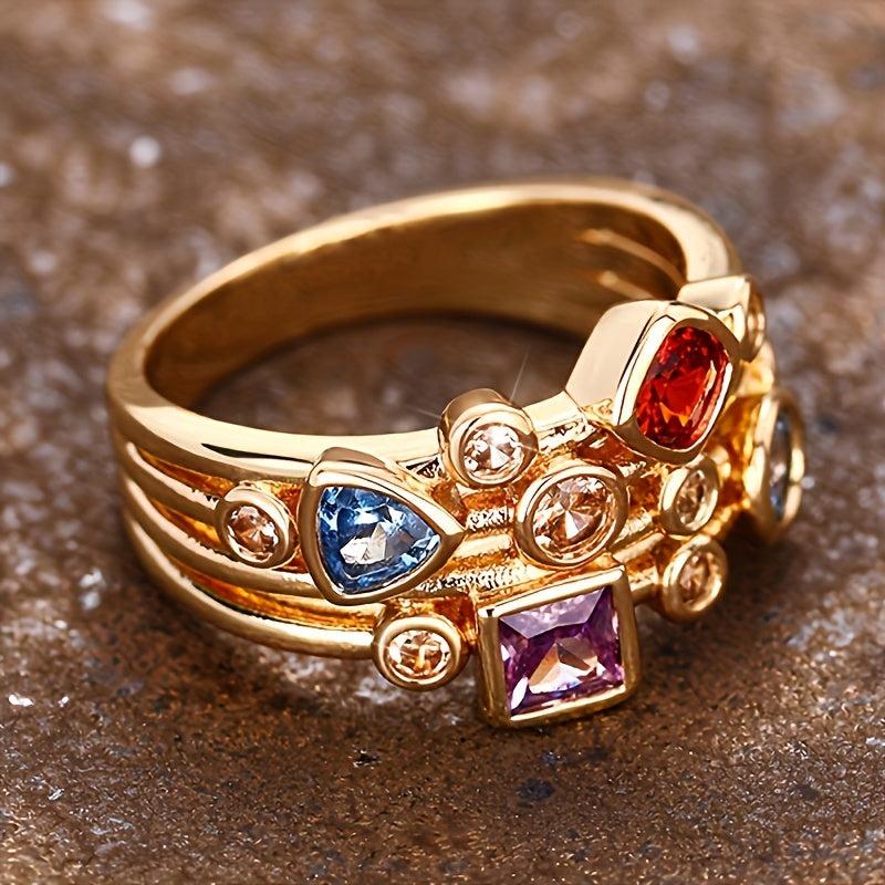 Enhance your style with this geometric zirconia ring featuring a golden tone design. Perfect for daily wear, parties, and special occasions.