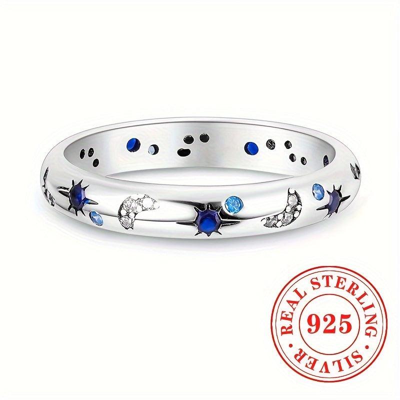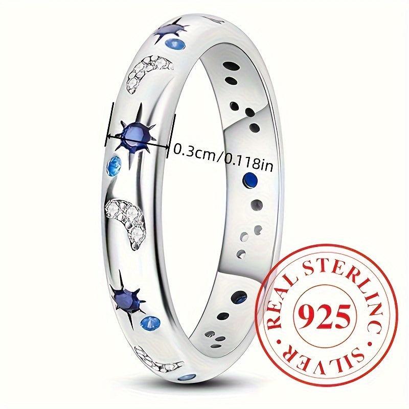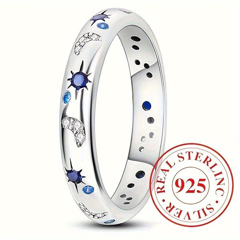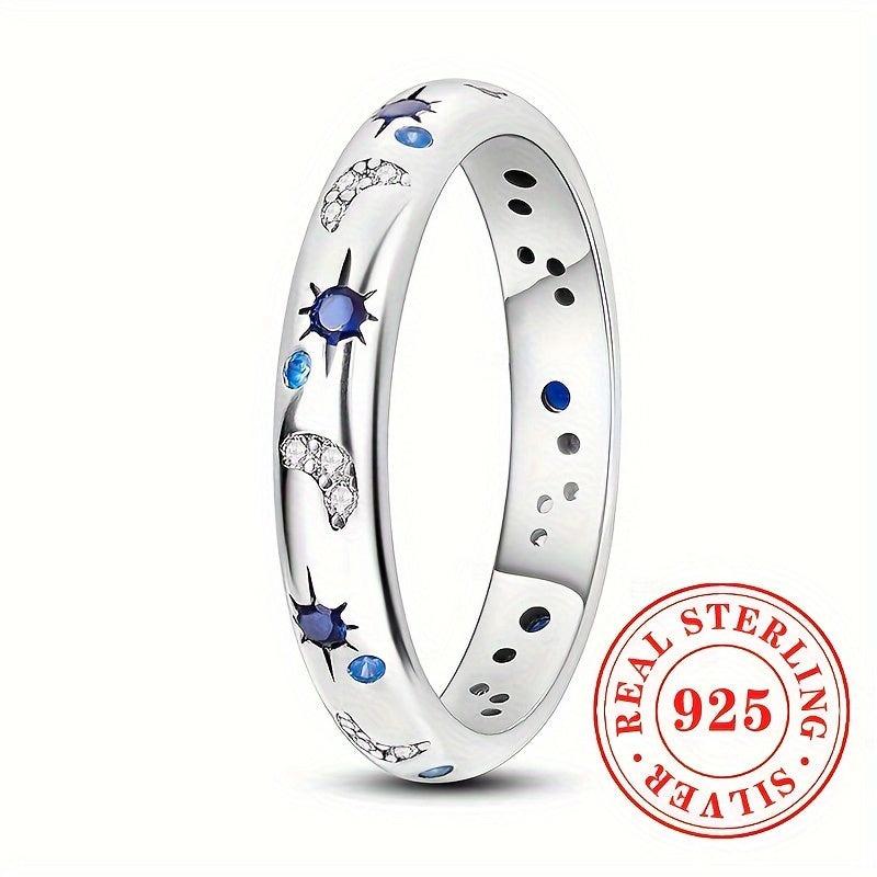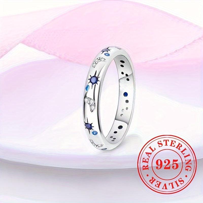 Add a touch of celestial charm with this sterling silver ring featuring synthetic zirconia star and moon design. Perfect for everyday wear, vacation, parties, and Ramadan festivities.