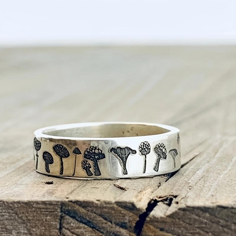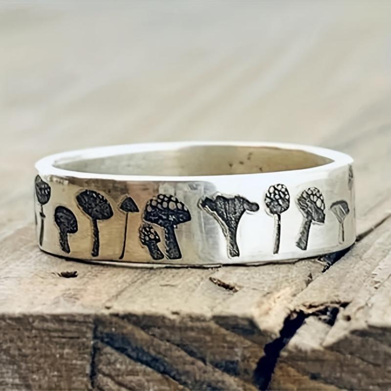 Elegant and unique, this mushroom pattern ring is a stunning piece of nature-inspired jewelry. It features golden plating that adds a touch of luxury to the design, making it perfect for everyday wear or special occasions. A great gift for her.