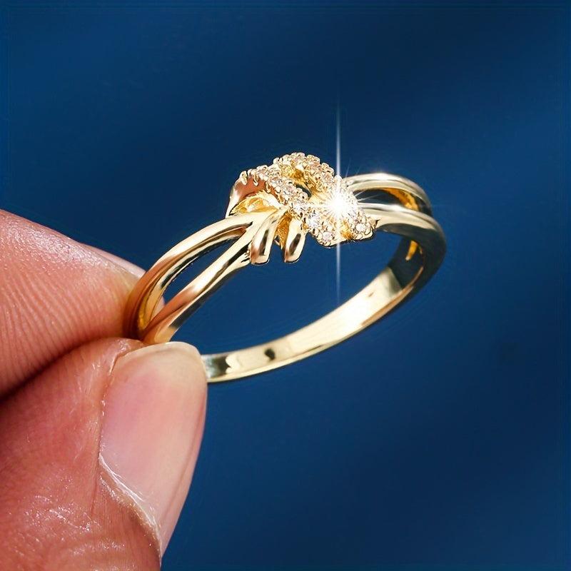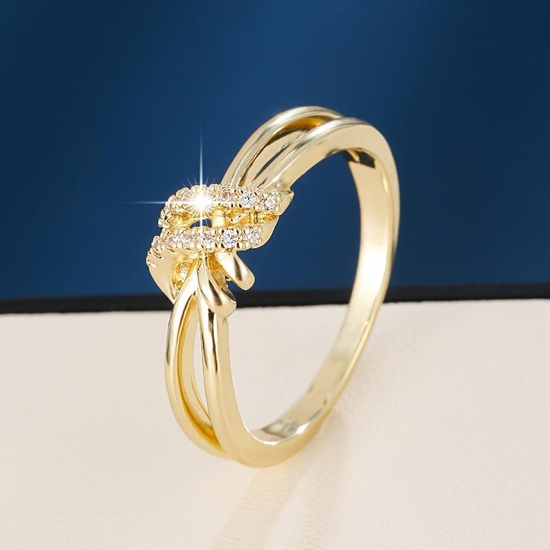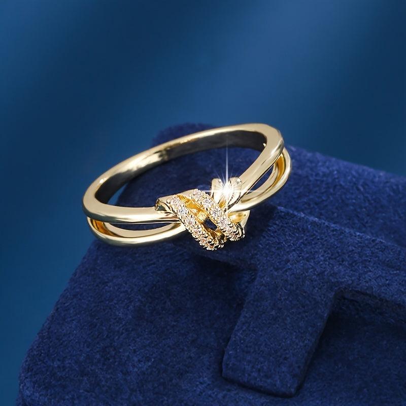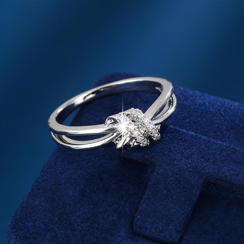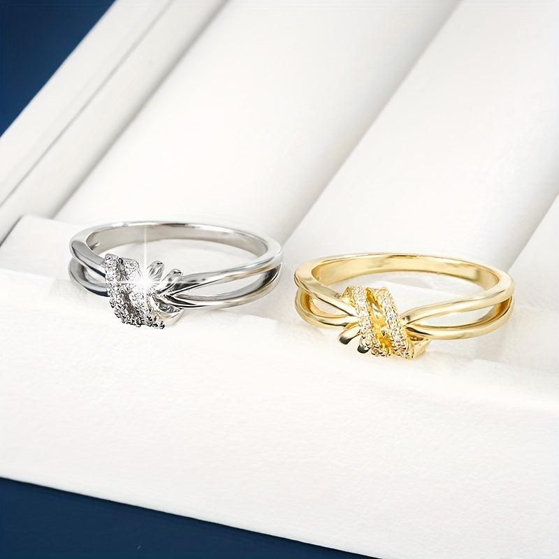 This elegant ring features a knot design and is adorned with synthetic zirconia, perfect for adding a touch of sparkle to any outfit.