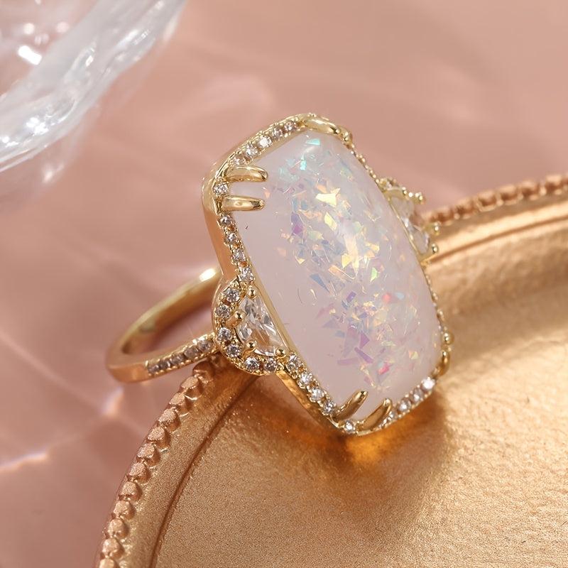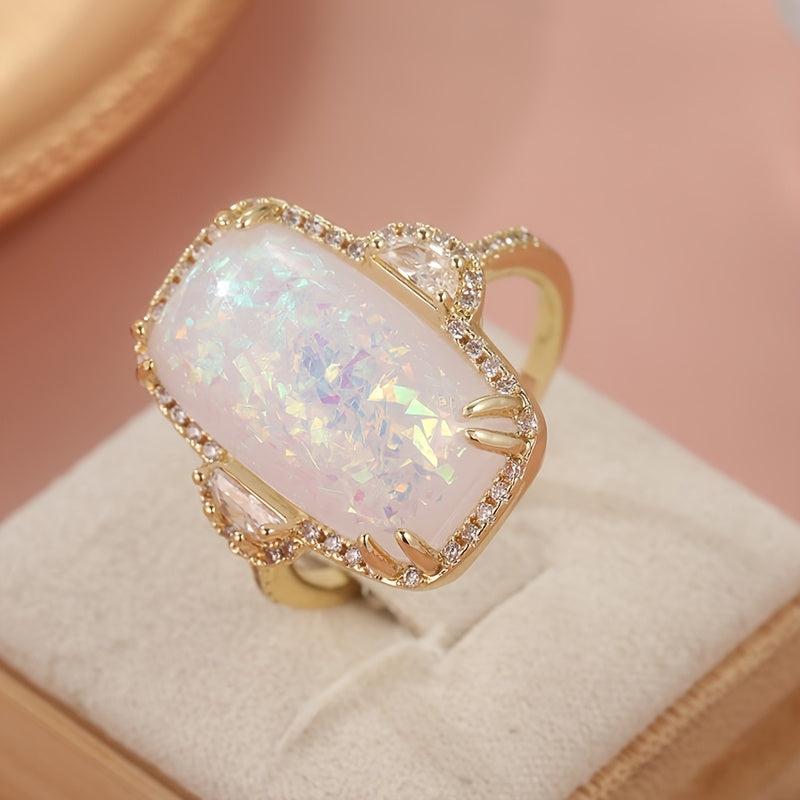 Large Elliptical Fire Opal Ring for Wedding Engagement Stylish Jewelry