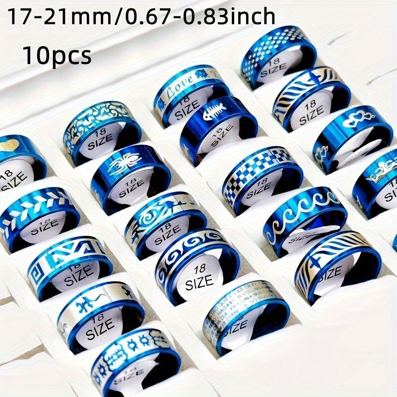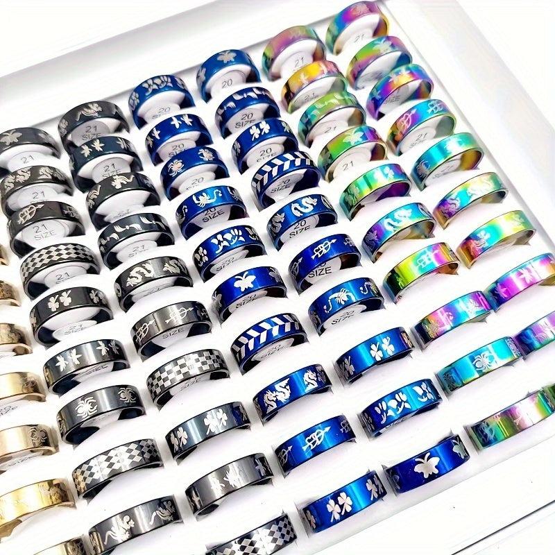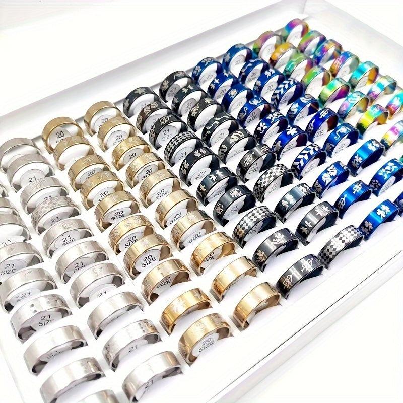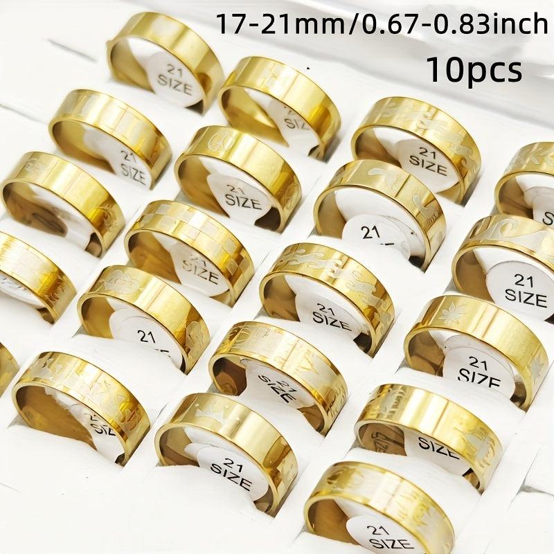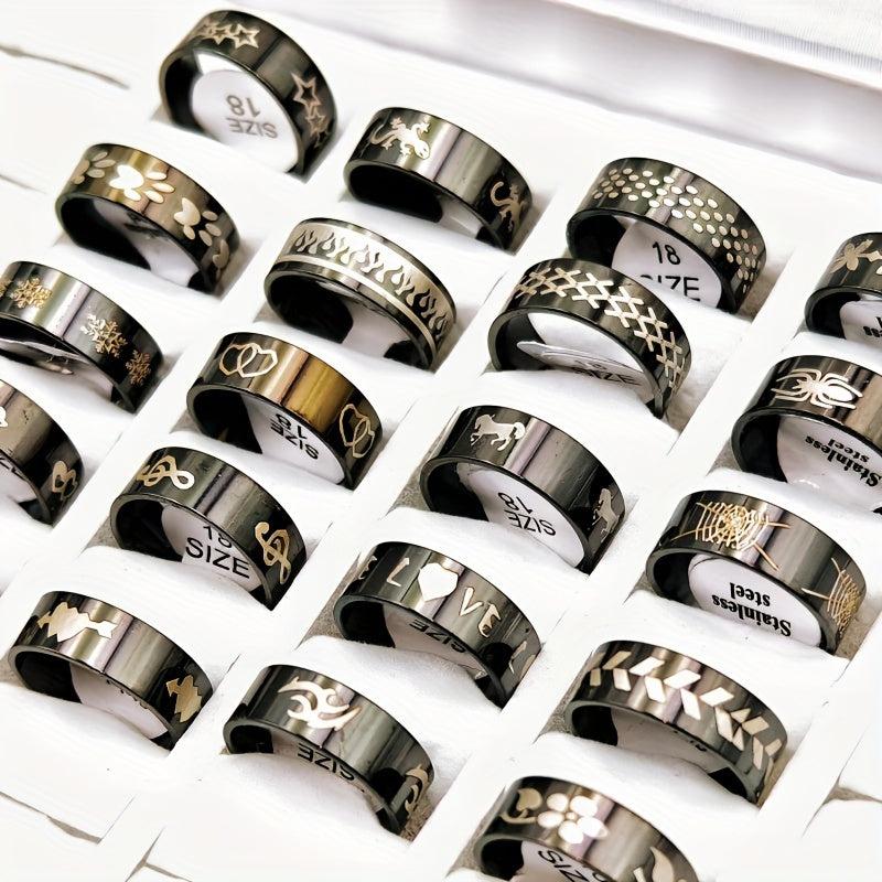 Elegant and durable stainless steel rings with laser engraving, perfect for daily wear and gifting. Available in sets of 10, 20, 50, or 100, suitable for all seasons.