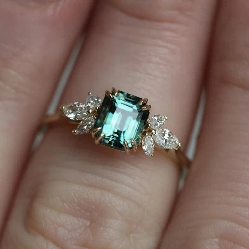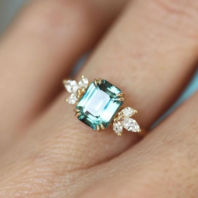 This golden tone ring features synthetic zirconia in leaf and geometric designs with sparkling cubic zirconia accents. Perfect for women's wedding, vacation, and holiday wear.