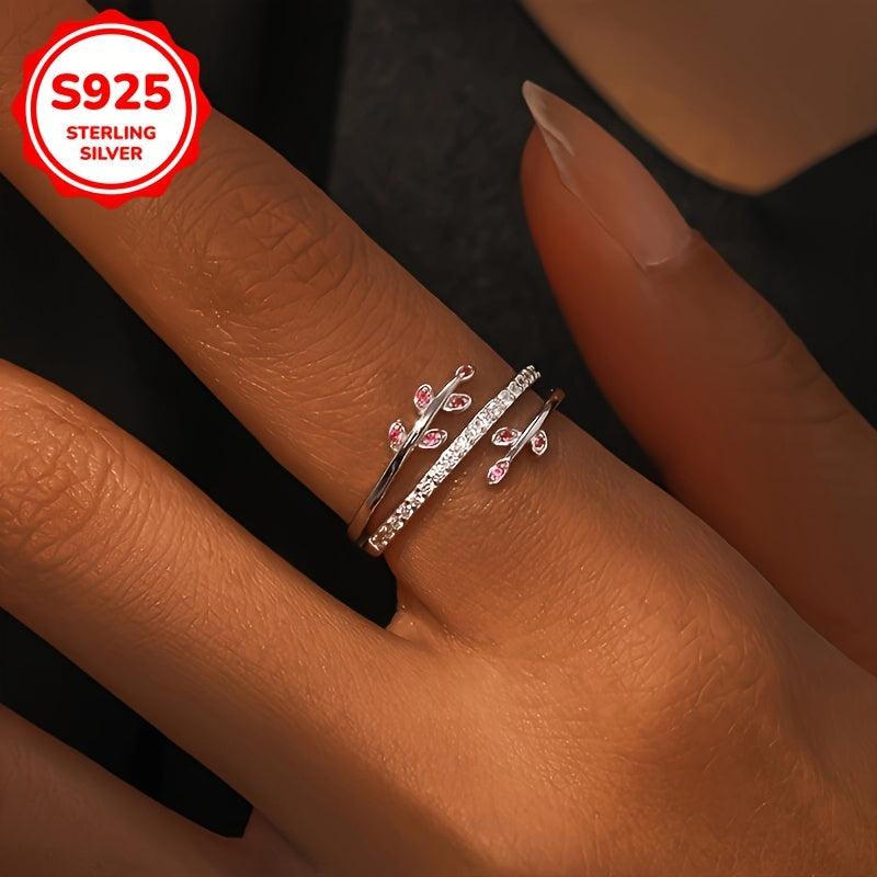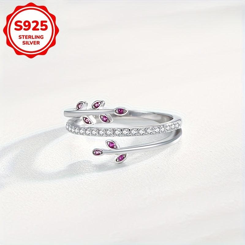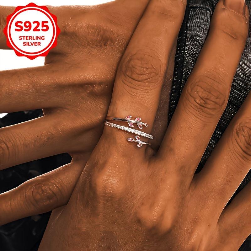 Add a touch of elegance to your casual attire with this light inlaid leaf lady ring featuring synthetic zirconia. Made of S925 silver, this ring weighs just 1.9g, making it perfect for a holiday look.