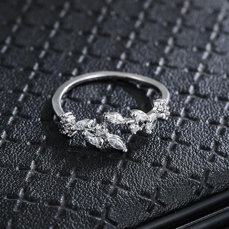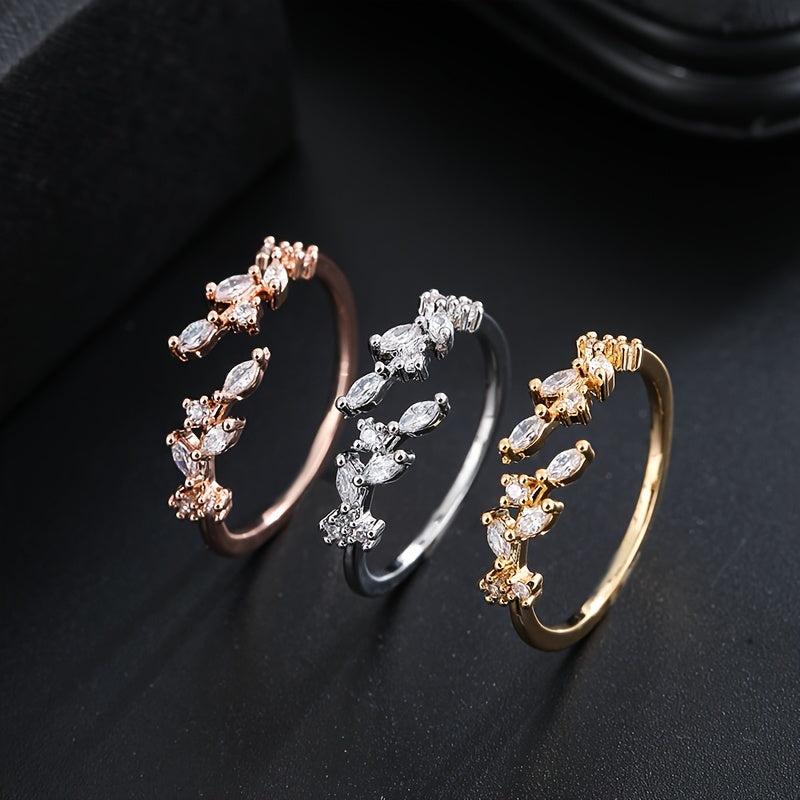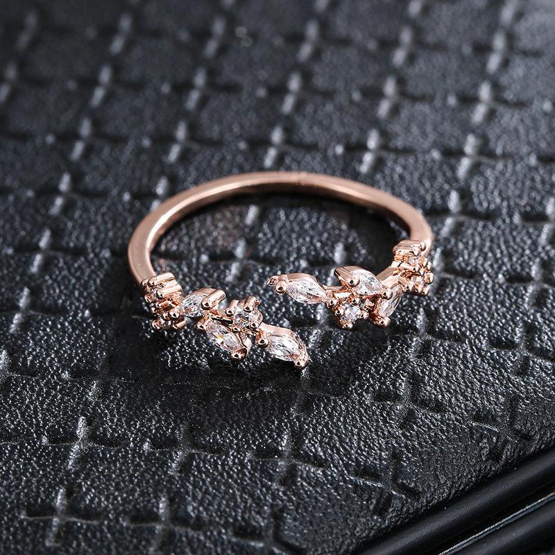 This stunning leaf ring features synthetic zirconia stones in a beautiful copper setting. Ideal for daily wear or special party occasions.