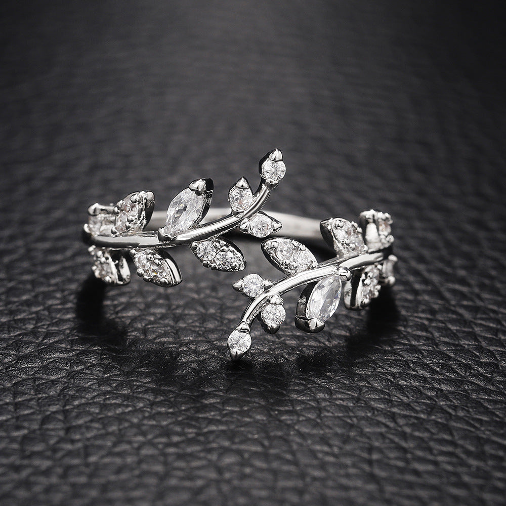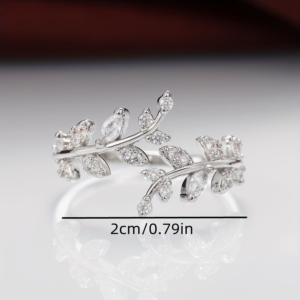 Leaf Shape Zircon Ring Adjustable Cuff Delicate Decor Women Girls Gift