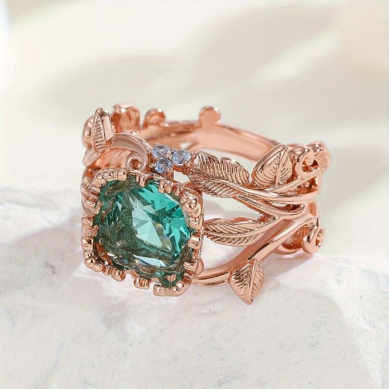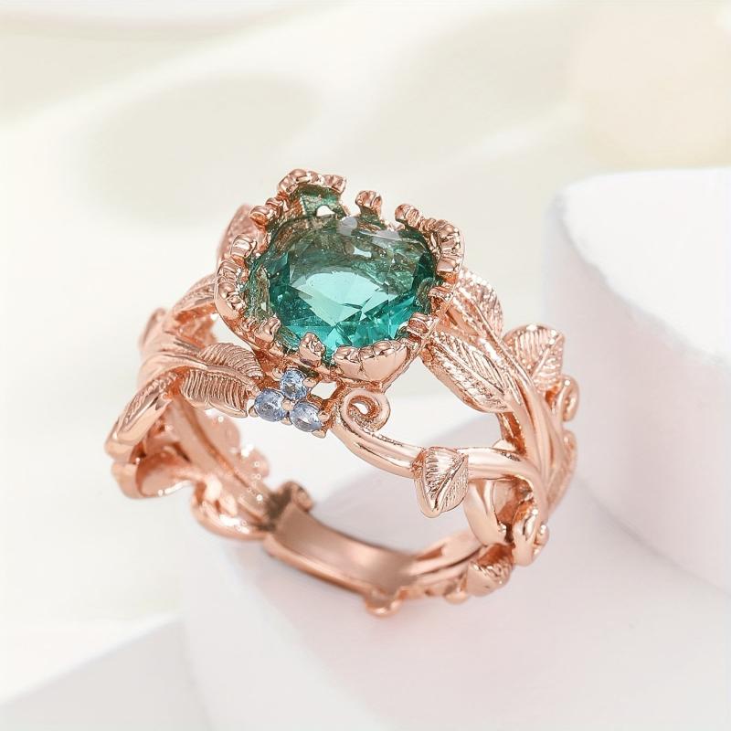 This stunning leaf shaped ring is crafted from copper and adorned with sparkling synthetic zirconia. A perfect gift for her anniversary or birthday.