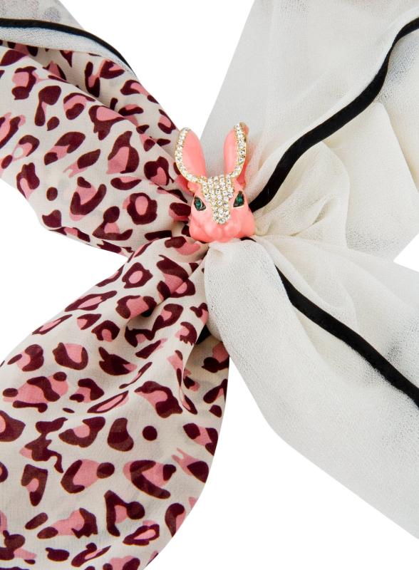 This stylish scarf holder ring features a cute rabbit face design with light bling detailing. Perfect for keeping your scarf in place while adding a touch of charm to your outfit.