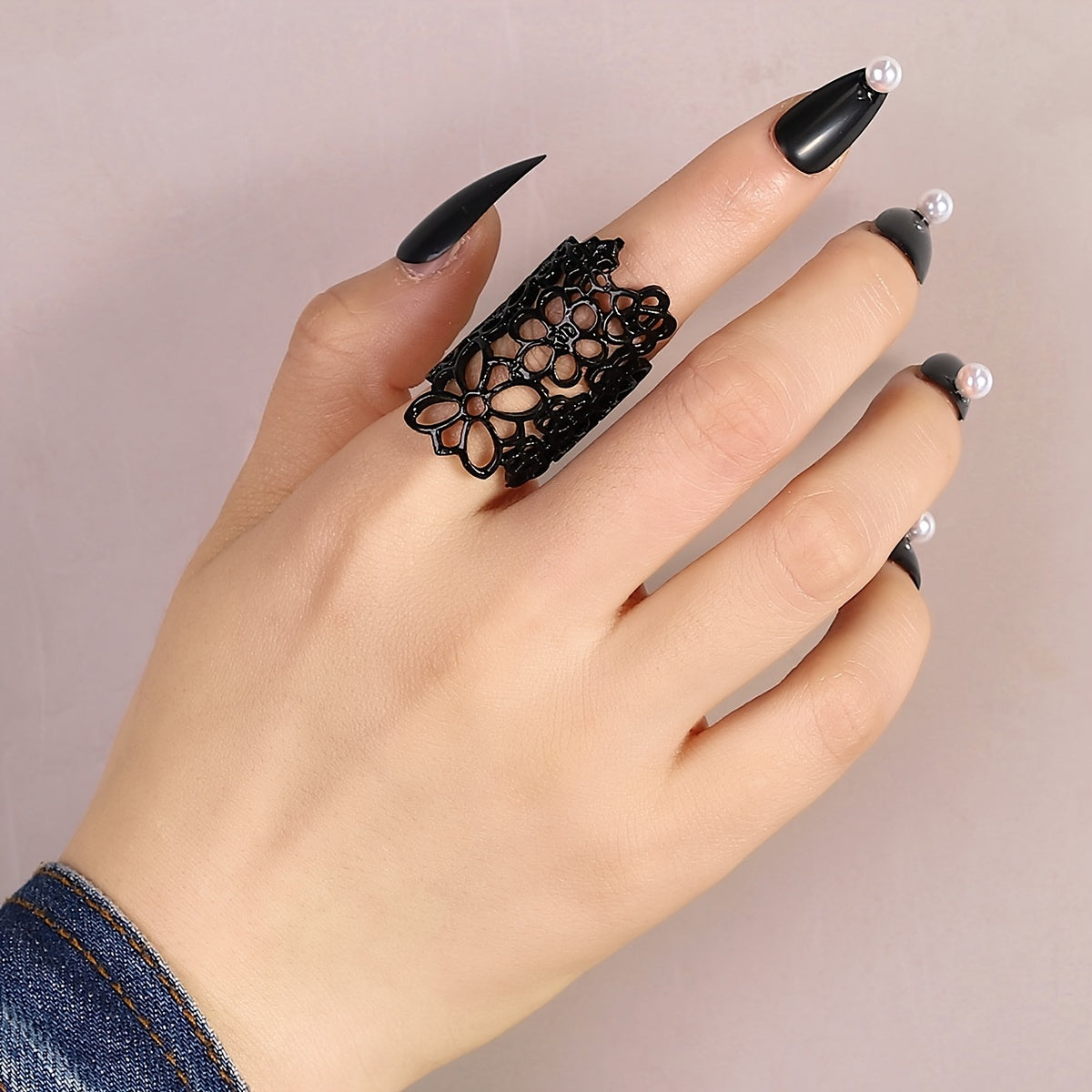 Unique and edgy open ring featuring silver plating and inlaid zircon stones. Adjustable size to fit any finger. Perfect for adding a touch of personality to your outfit.