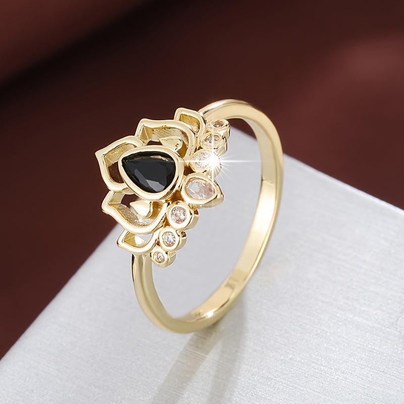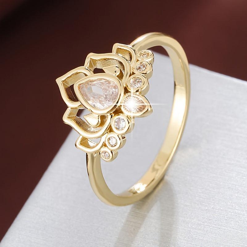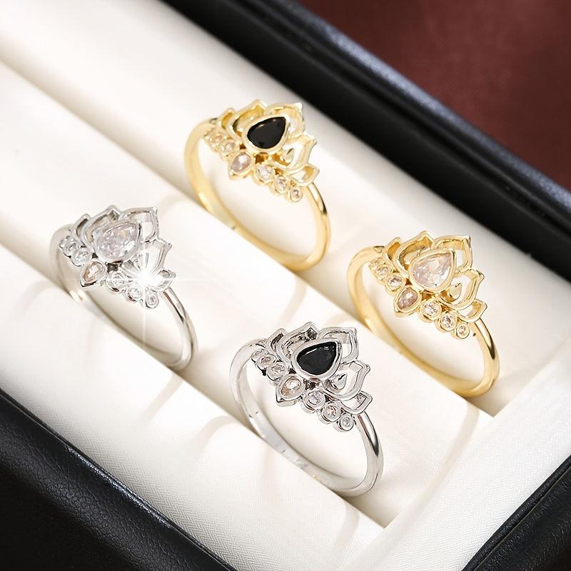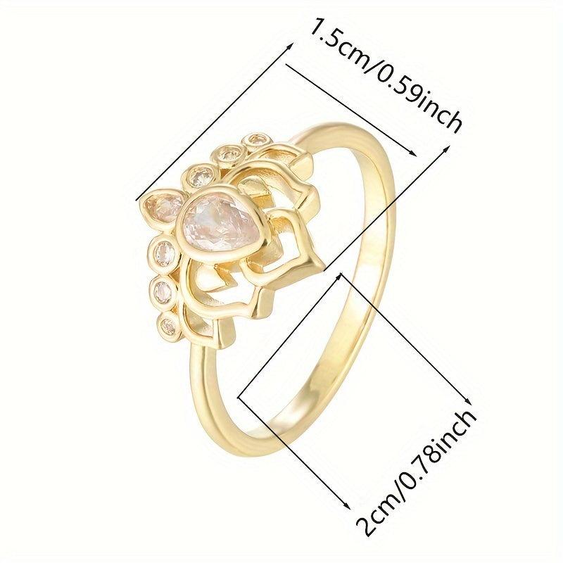 Add a touch of elegance to your look with this stunning Lotus Flower Ring featuring sparkling Cubic Zirconia. Ideal for parties and suitable for all seasons, this copper jewelry piece is a must-have in your collection.