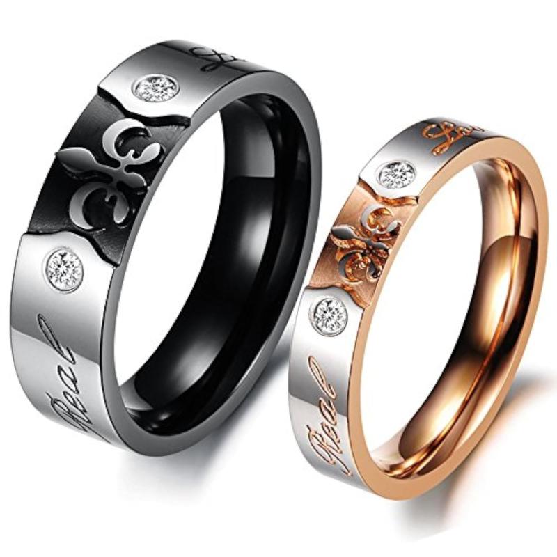 Get this beautiful set of love birds crystal couple rings made of premium 316L stainless steel. Perfect for expressing your love and commitment.