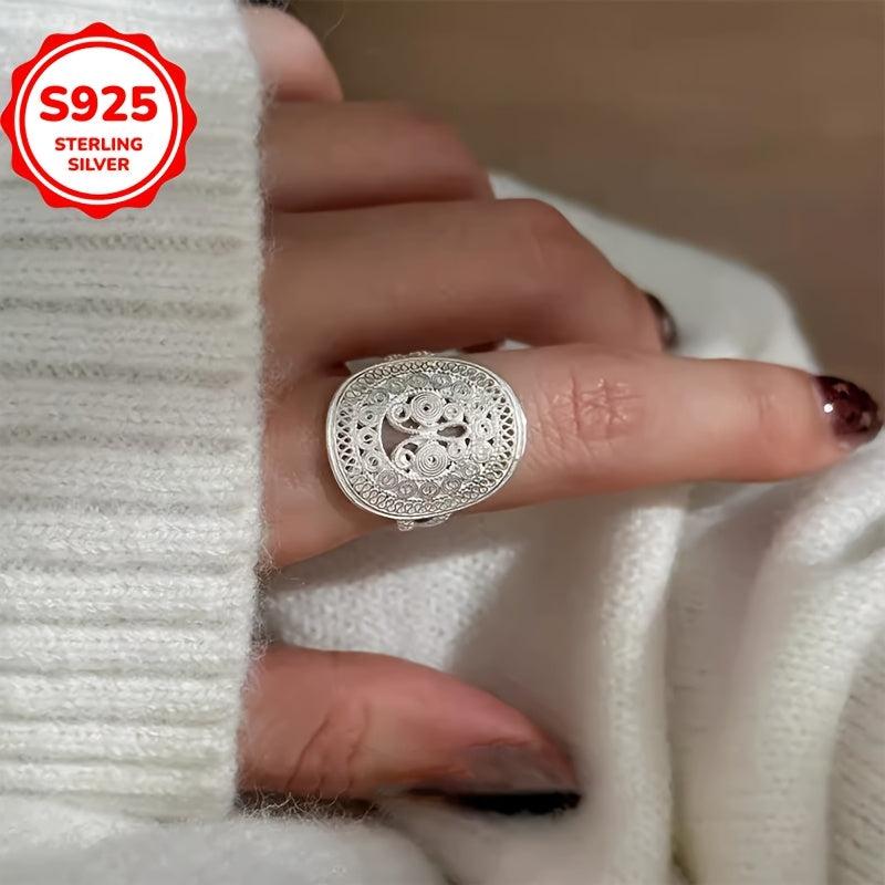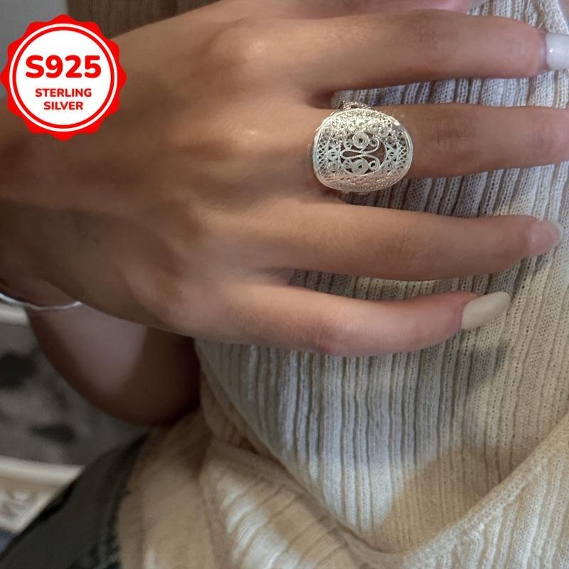 This stylish retro ring features a hollow flower design, perfect for adding a touch of elegance to any outfit. Made with low allergy materials, it is suitable for year-round wear. A great gift for any occasion!