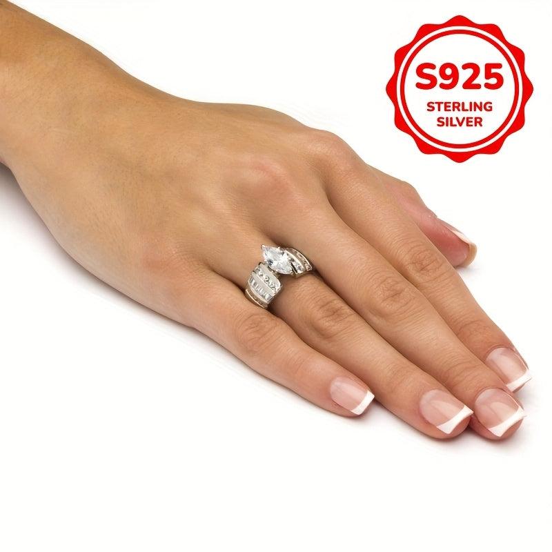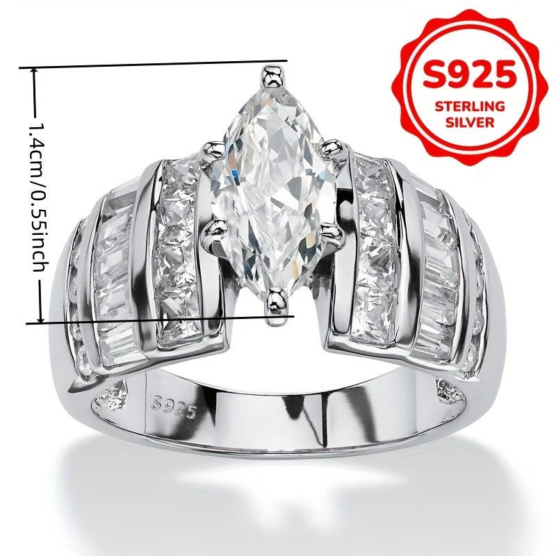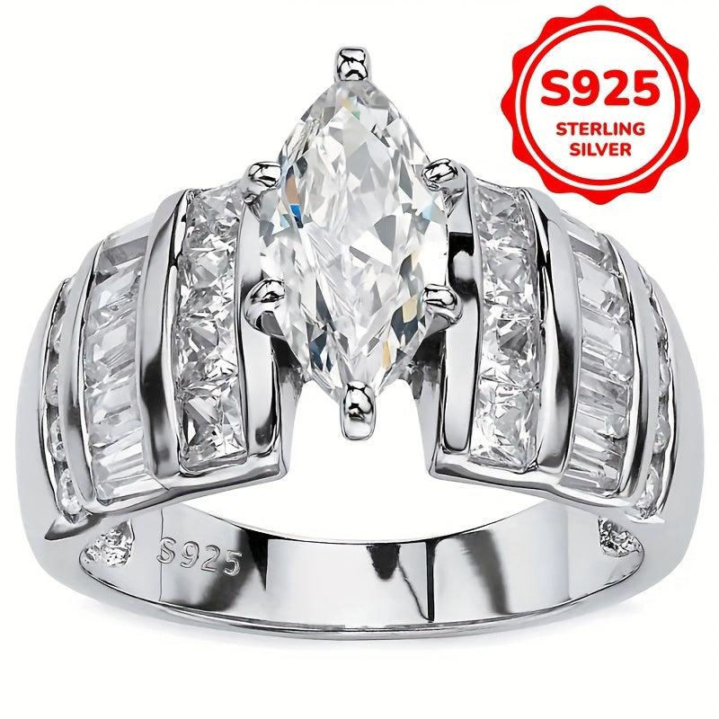 This elegant anniversary ring features a marquise-cut synthetic zirconia set in pure S925 silver. Perfect for daily wear or casual occasions.