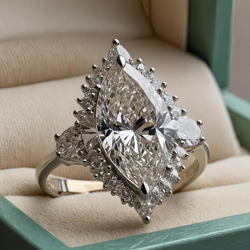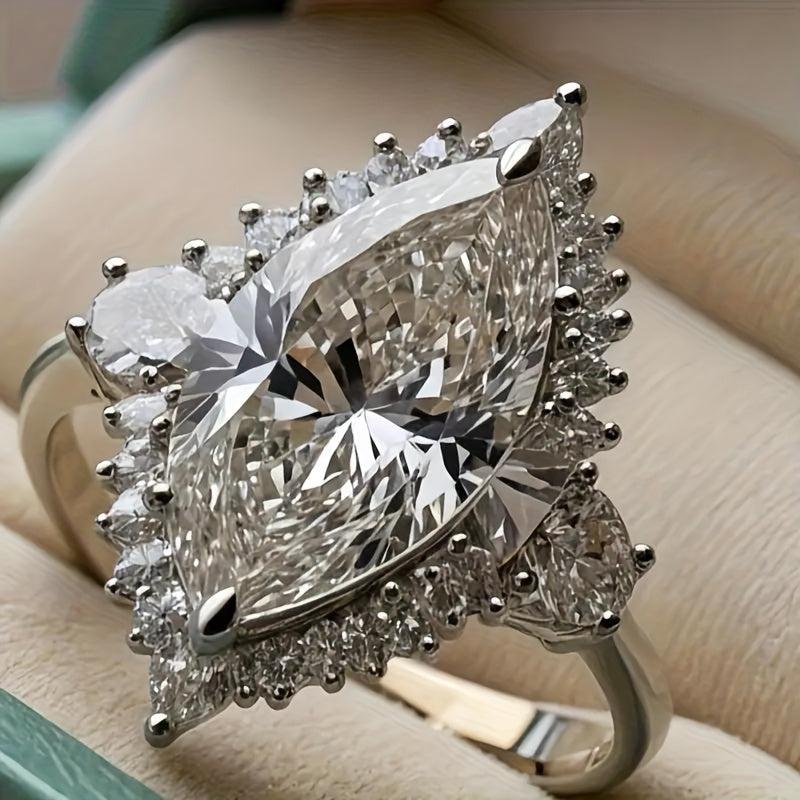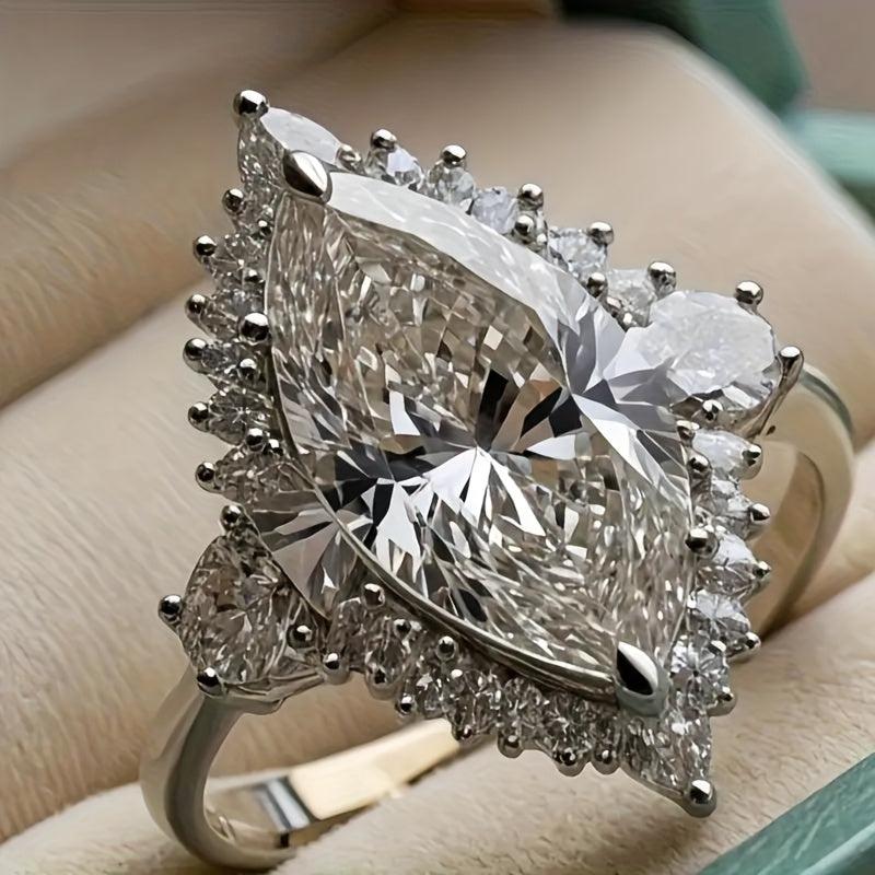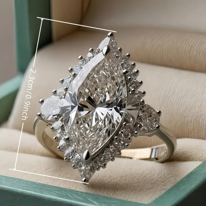 Stunning inlay marquise zirconia ring perfect for wedding or anniversary gift.
