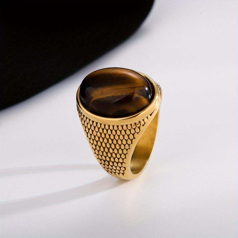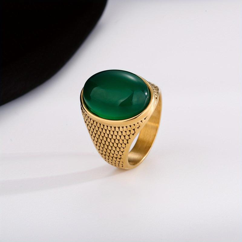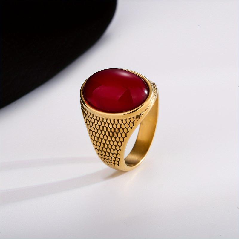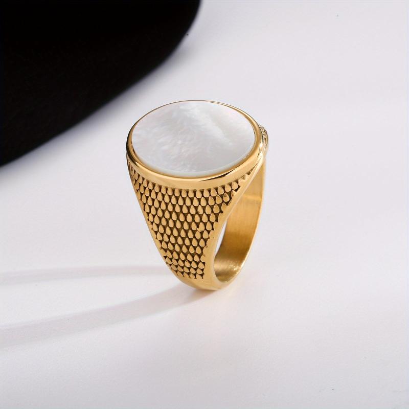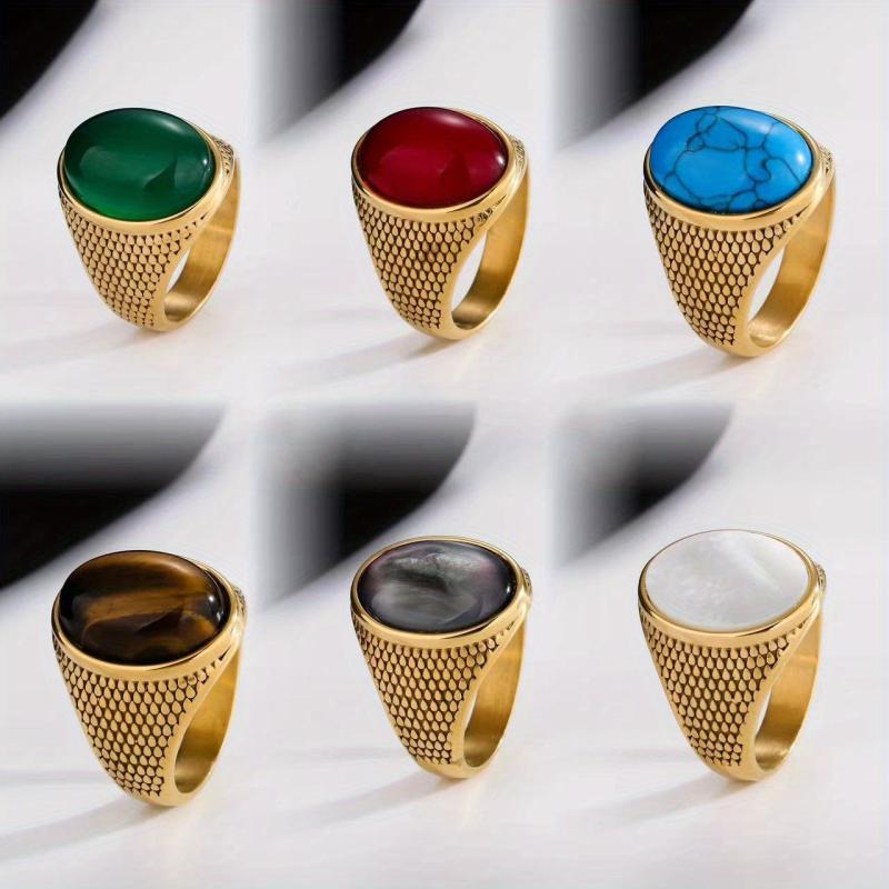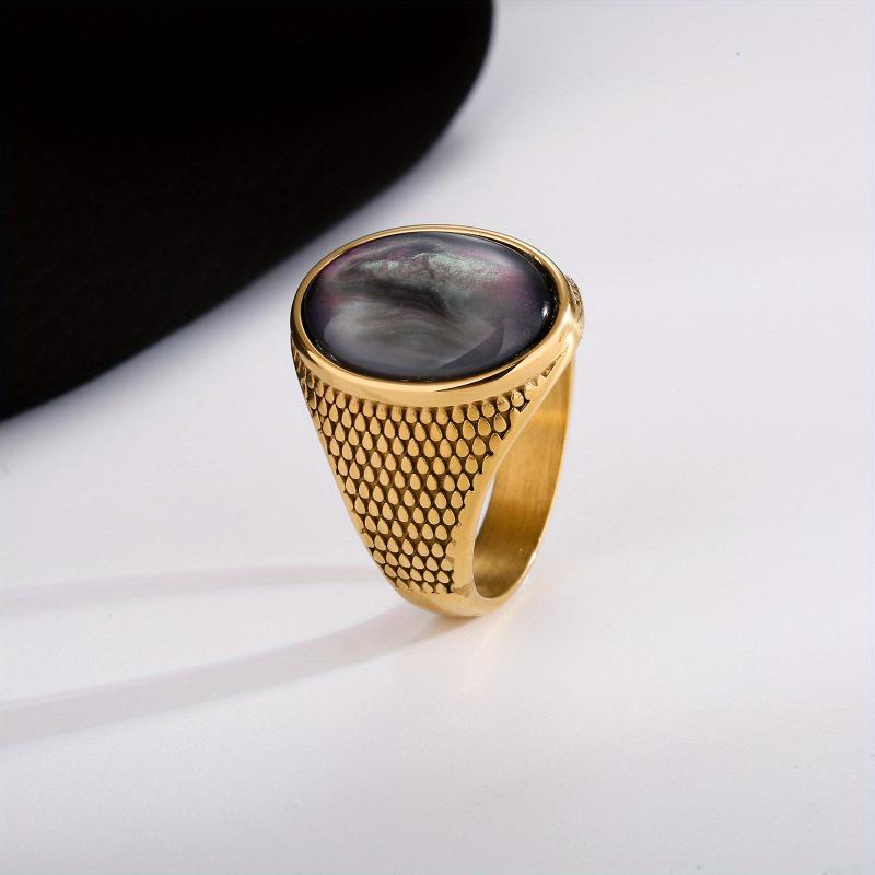 This avant-garde oval signet ring features a synthetic faux gemstone set in durable 316L stainless steel, making it a stylish choice for any outfit.