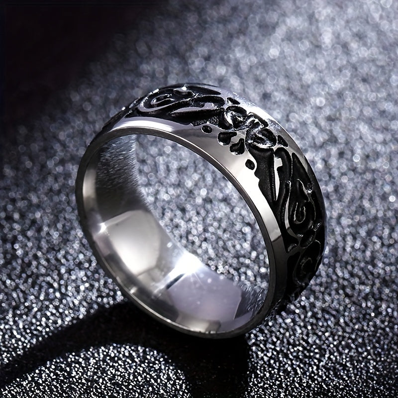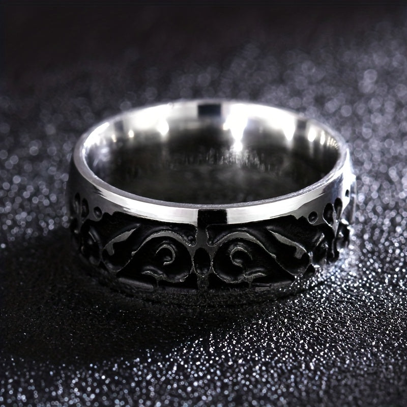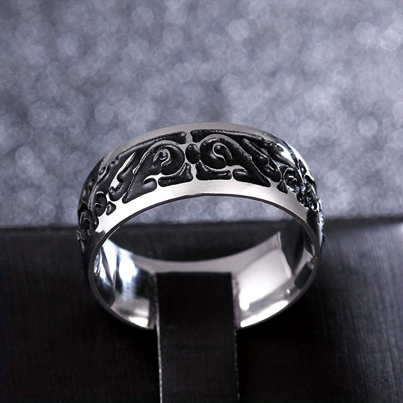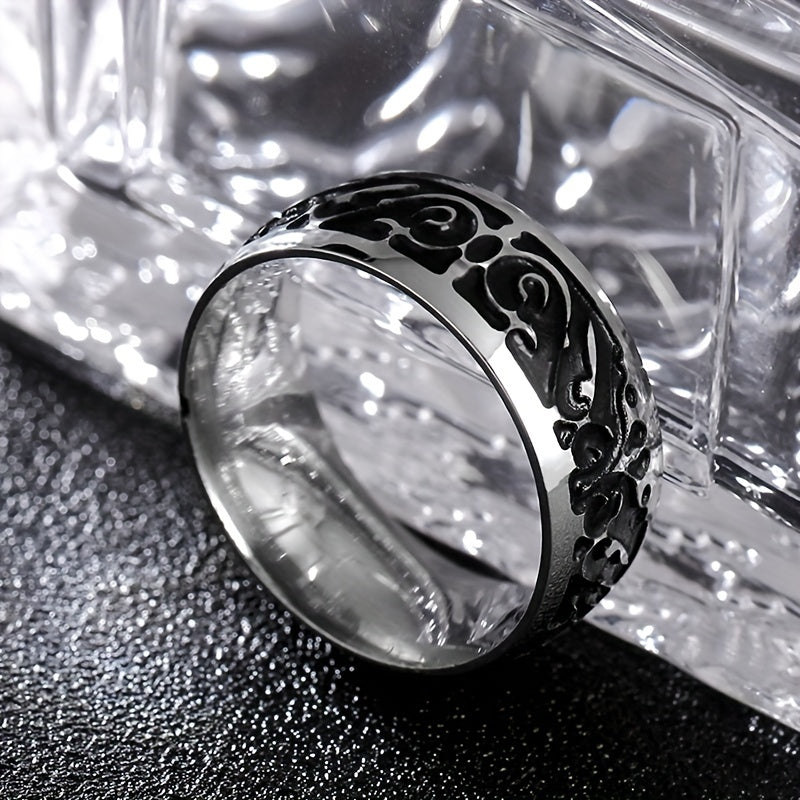 This men's ring features a vintage pattern with textured details for a stylish look. Made of durable materials, perfect for everyday wear.