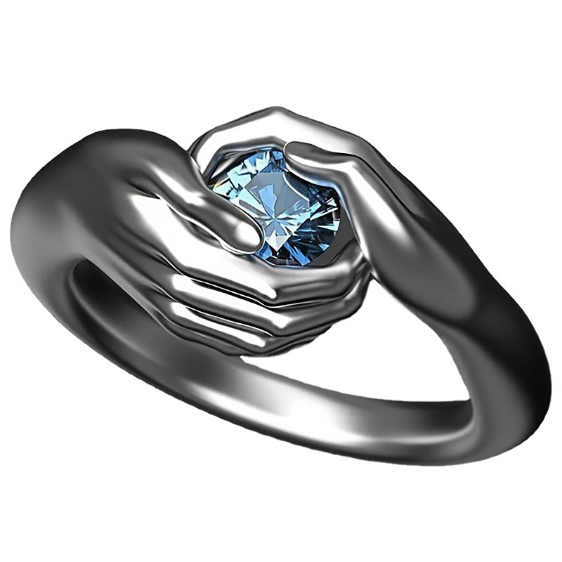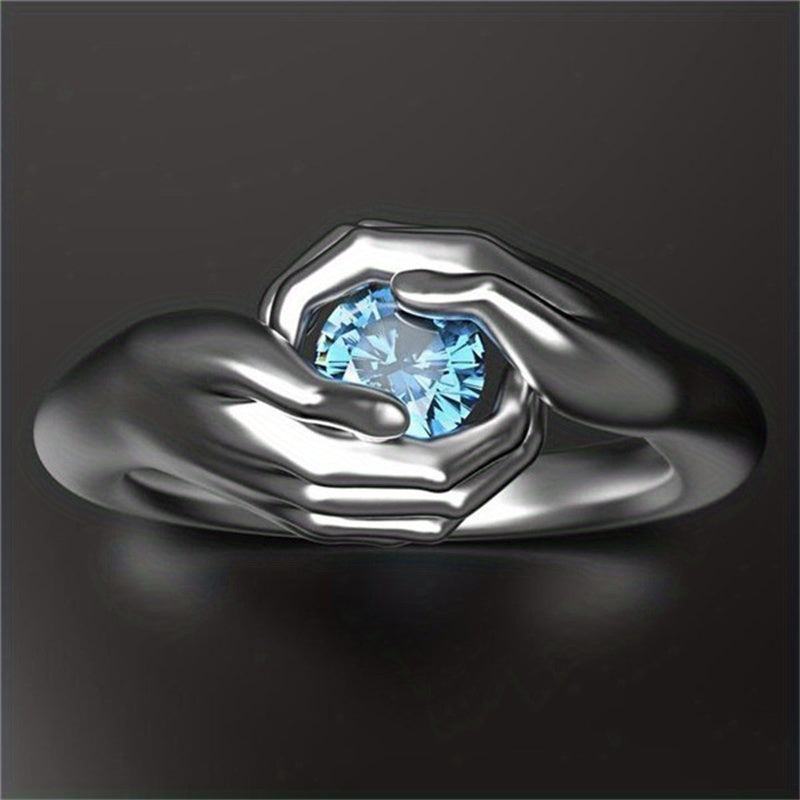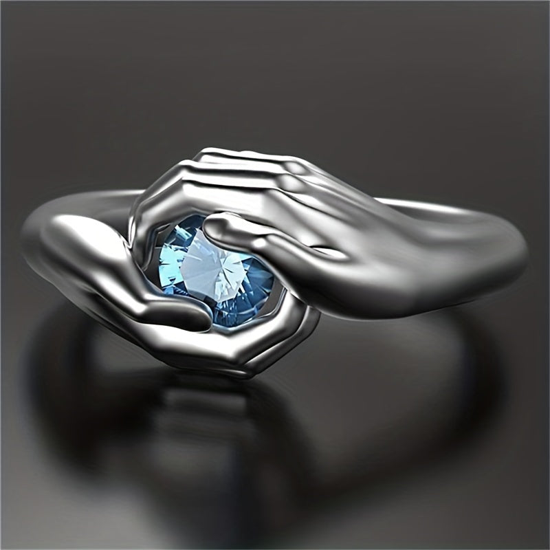 This handsome ring features a unique design with aquamarine stone. Perfect for couples seeking a meaningful symbol of love and protection.